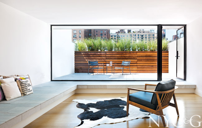 Their clients’ long history with the property made it apparent that they were of like mind. Years ago, the husband’s father owned a unit in the townhouse, which he eventually passed on to his son. After the couple married and were expecting their first child, they bought the unit above to create a duplex. A few years later, they bought the top-floor apartment, and then hired O’Neill and Rose to renovate what had grown into a triplex. As the remaining neighbors sold off their apartments, the architects’ job grew much bigger. “We were suddenly combining six apartments and renovating the entire building,” recounts O’Neill, who practiced with Diller, Scofidio + Renfro, Steven Harris Architects, and other noted firms before setting up shop with Rose in 2008. The basement and cellar levels were given over to a duplex rental unit, while the remaining levels were transformed into the family’s home.