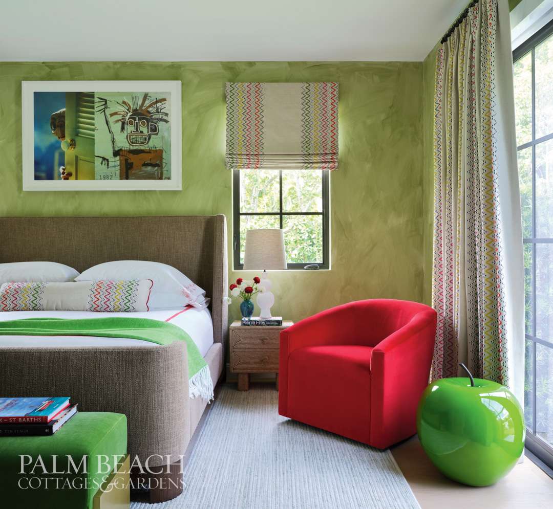 Normally, Kah explains, she would “design a room around a specific artwork, but here, at a moment’s notice, a painting might be moved to another home.” So, the assignment required her to splash every room with color to help define the spaces, but also to create an environment that would permit any artwork to fit in seamlessly. “It was a delicate balance,” Kah says. “We didn’t want to overpower the art, but we had to keep the design interesting.”