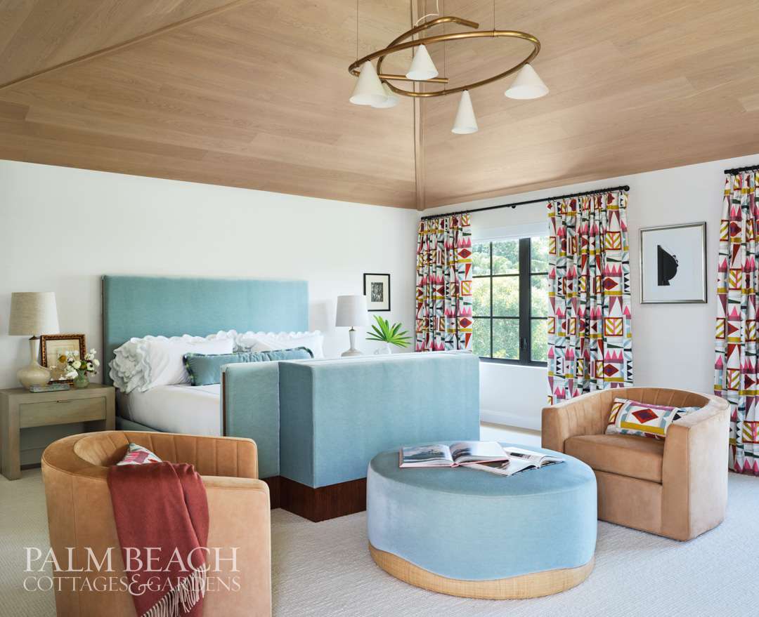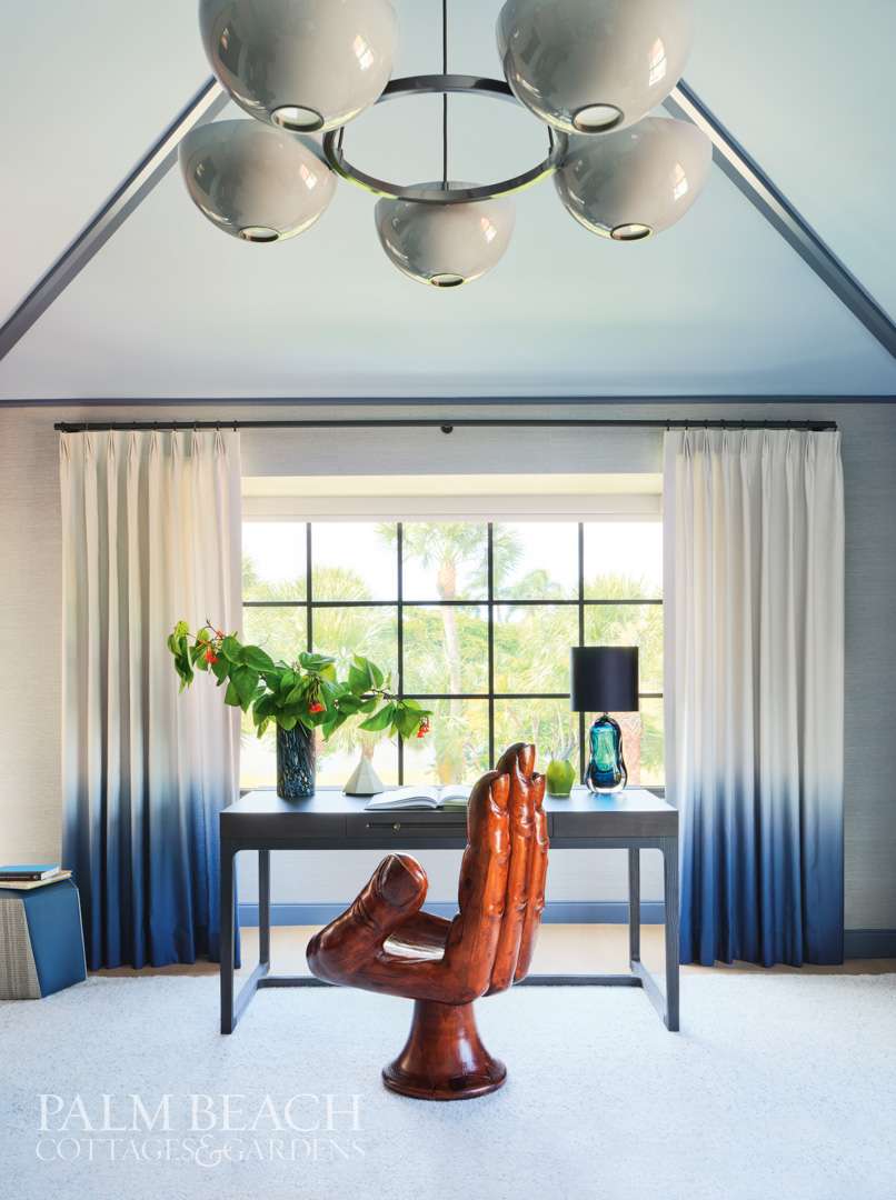 Built as a spec house, the home is located on Pendleton Avenue, overlooking The Breakers golf course. Originally, it had four bedrooms and an adjoining guest house, but one of the bedrooms was converted into the husband’s office. (The guest house, which Kah didn’t touch, is reserved for their grandchildren.)
