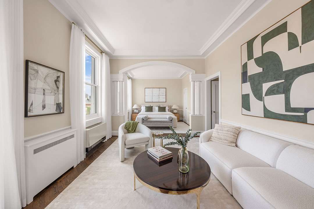 Their prewar penthouse is currently dressed with serene and fresh staging by Vesta Home, but if it is beckoning you to make it your own, Noble Black and Jennifer Kaufman Stillman of Douglas Elliman hold the listing.
