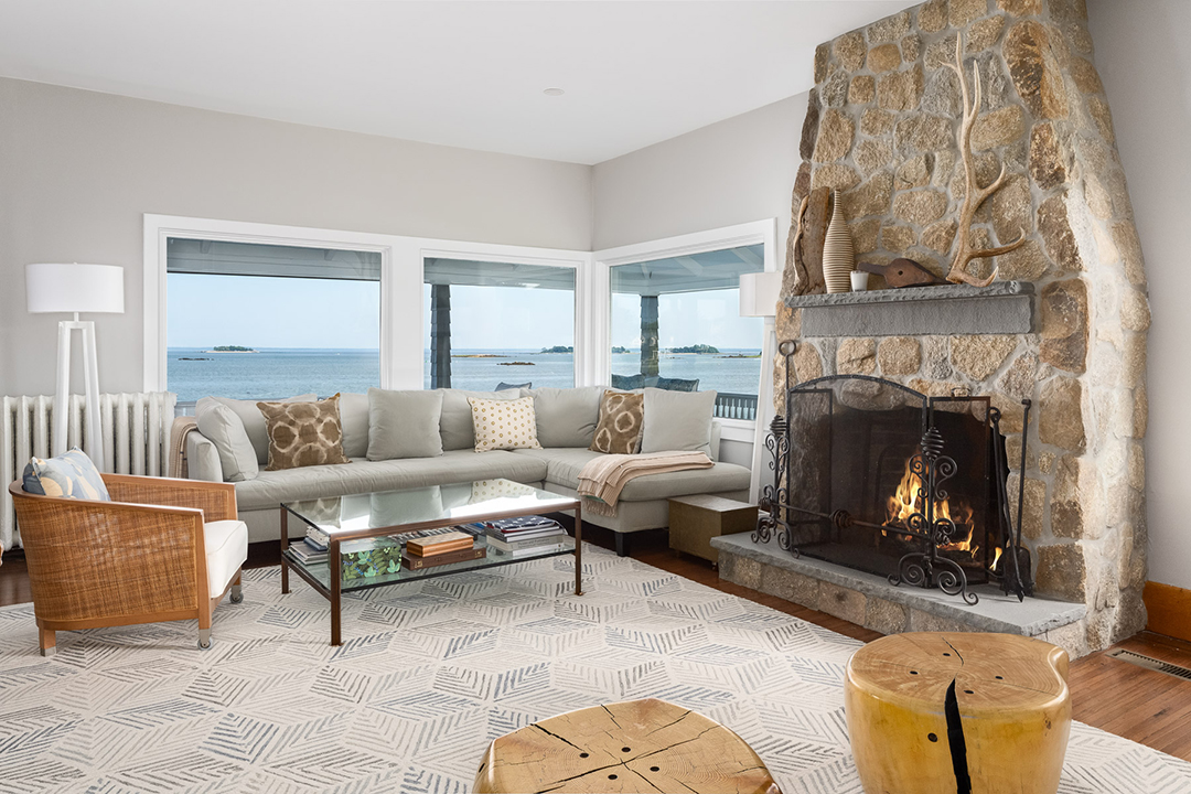 With multiple places where boats can dock and a marina right nearby, the half-acre property seems destined for an avid boater and those with boating friends. Especially since this listing will come with two boats at-the-ready as well. Once on the island, water views abound whether you’re enjoying the plethora of outdoor spaces—including a gazebo along a private rock pathway—or heading straight for the house.