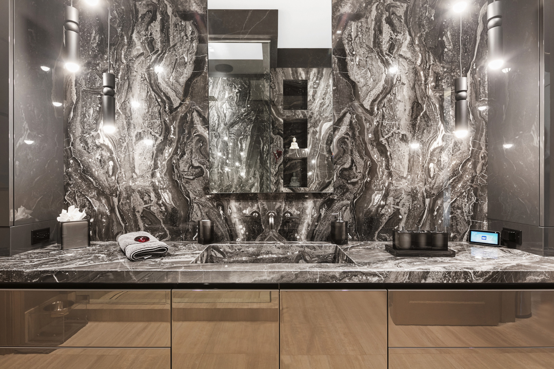 A 988-square-foot guest house overlooks the pool, providing a calming spot for visitors. There’s also a zen-inspired garden, sprawling greenery, and 565 feet of lake frontage. Senada Adzem of Douglas Elliman holds the extravagant, ultra-luxury listing.