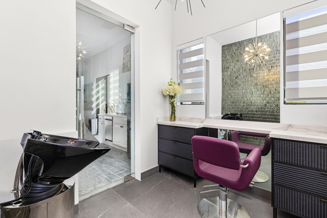 The double-lot estate sits on over five acres that ideally back up to a lake for natural privacy. The residence, originally built in 2008, clocks in at 10,929 square feet and was extensively renovated in 2022. The expansive main house has seven bedrooms and ten full bathrooms, but that alone is not what catches the eye. The interiors are bursting with glitzy finishes and over-the-top amenities you rarely see, even at this price point. The primary suite offers dual bathrooms and a custom Louis Vuitton-inspired closet/dressing room, outfitted with biometric security. Other opulent spaces include a gift-wrapping and craft room, a club room/bar, and a fully-equipped spa with an integrated salon. So, the future owner can get haircuts, massages, and facials in the privacy of their own home. After all, if you are dropping a whopping $55 million on a property, why would you ever want to leave?