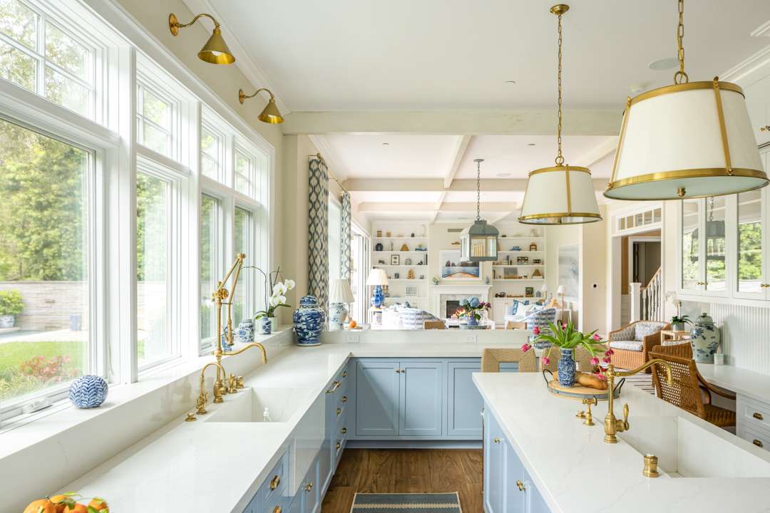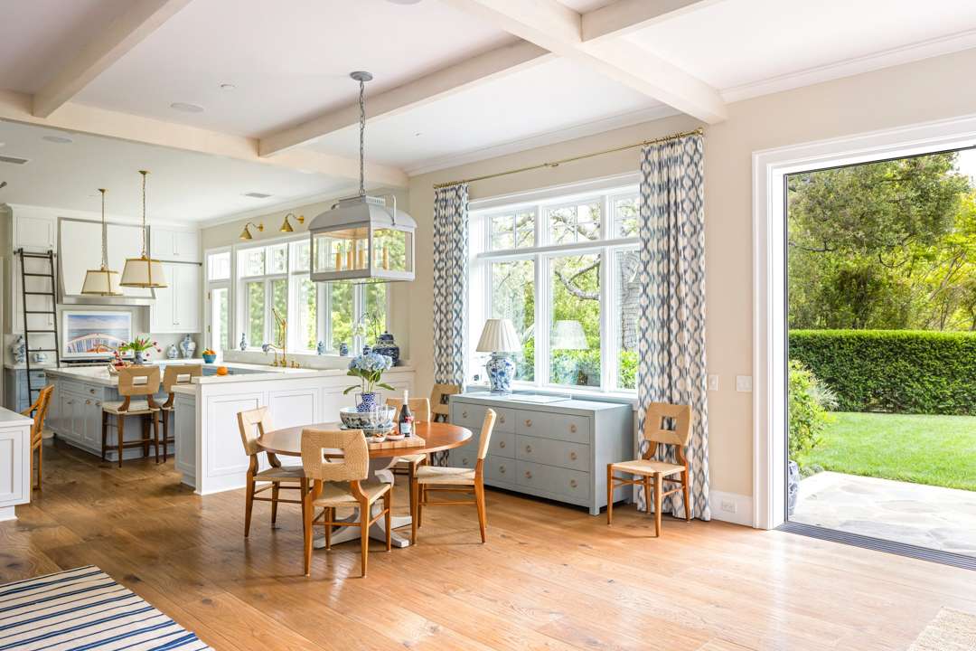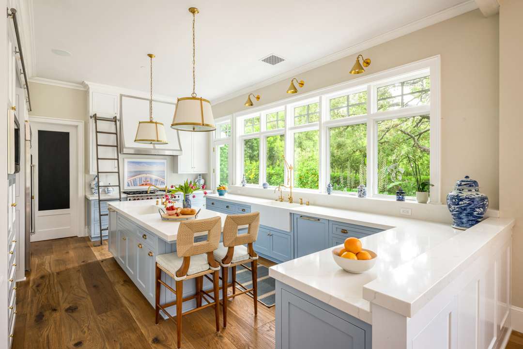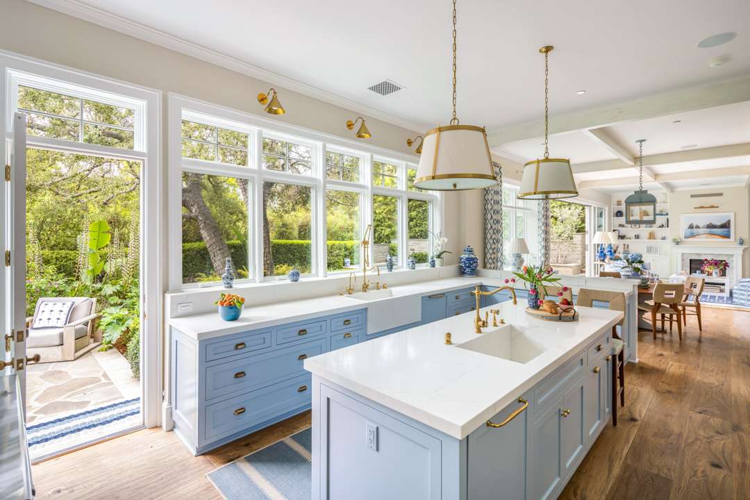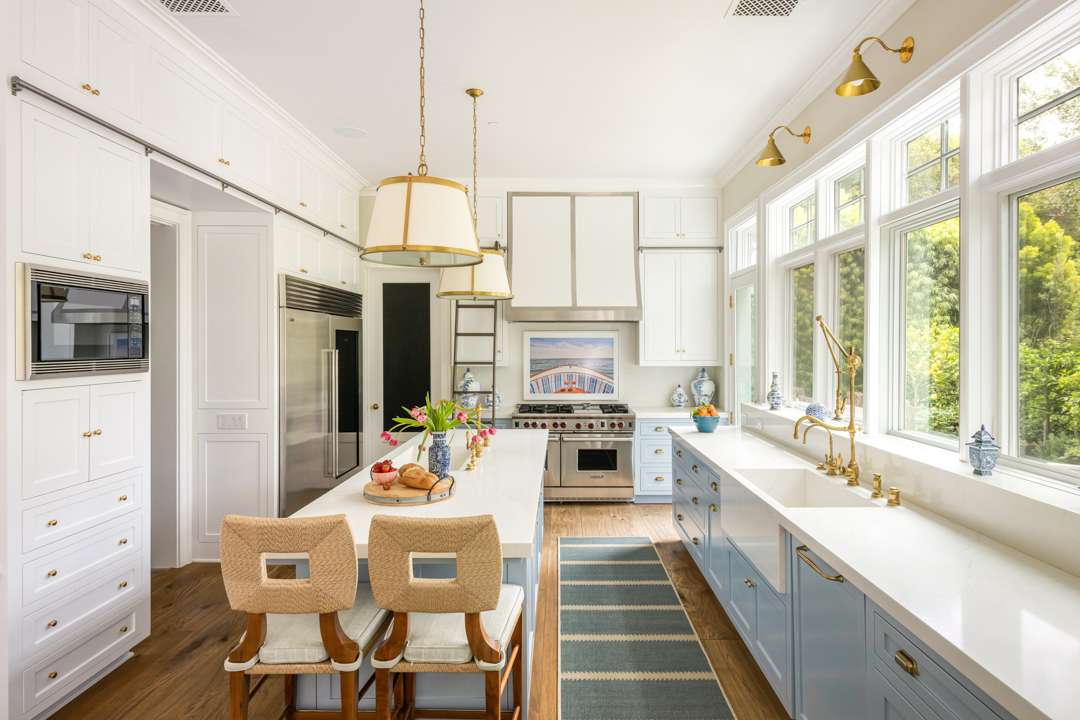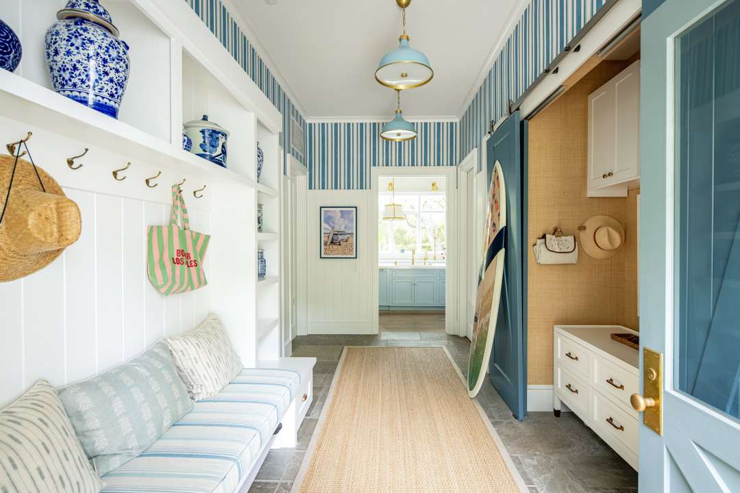 The interiors of this modern farmhouse are infused with hues often appearing in Malin’s beachy photographs: Light blues and sandy neutrals. “I try to create spaces that feel like you’re on a vacation. Each room invites you to escape to a new destination,” Malin said of the property in a 2024 interview with Better Homes & Gardens. “You could be in the Hamptons or you could be on Nantucket, but you’re actually in a canyon by a beach in L.A.”