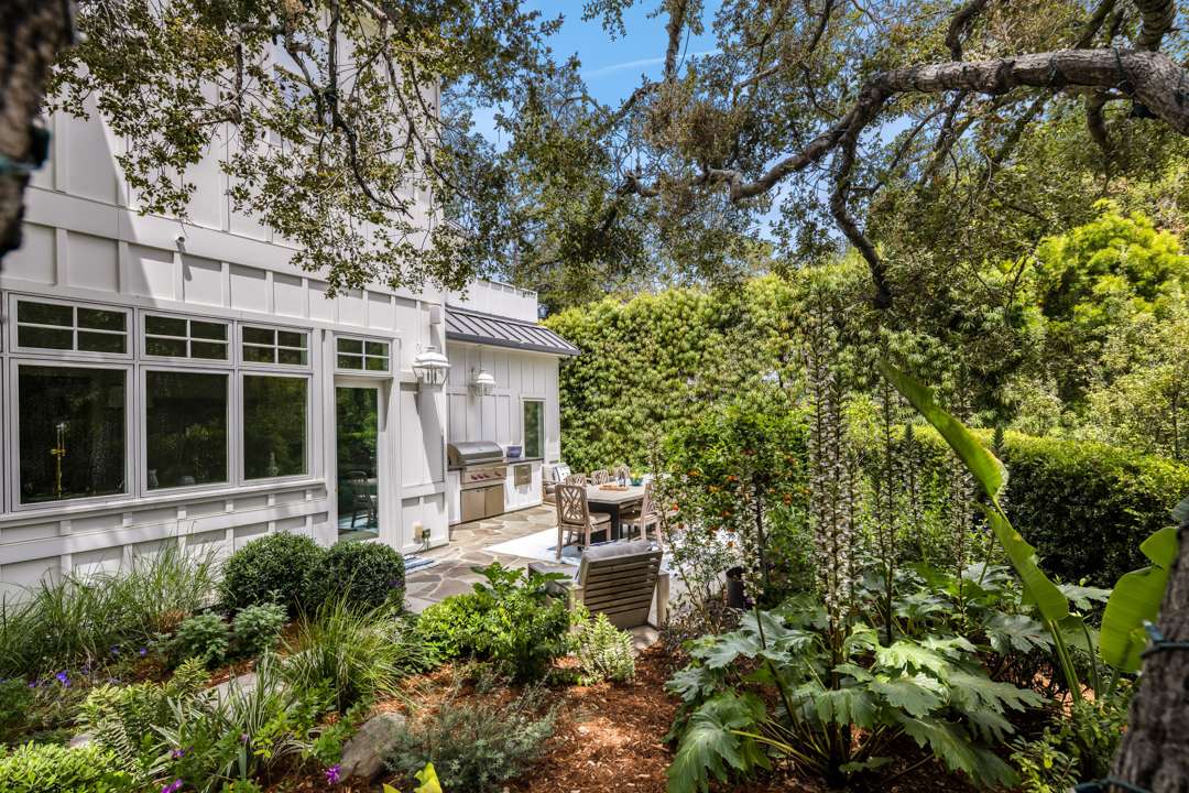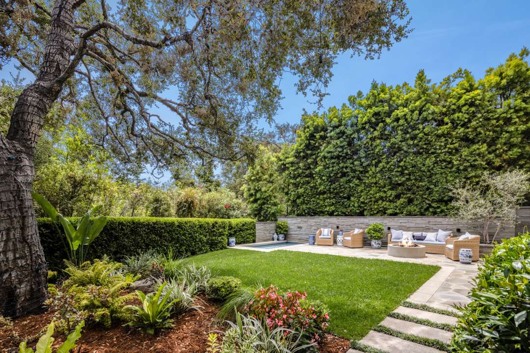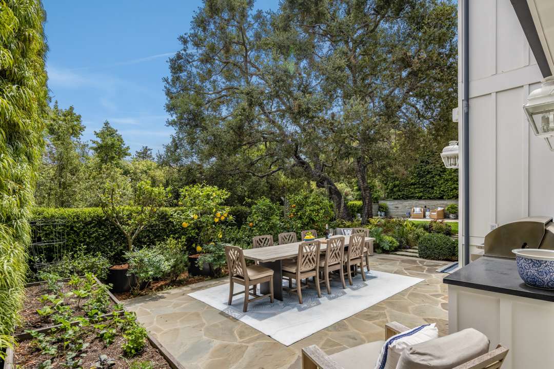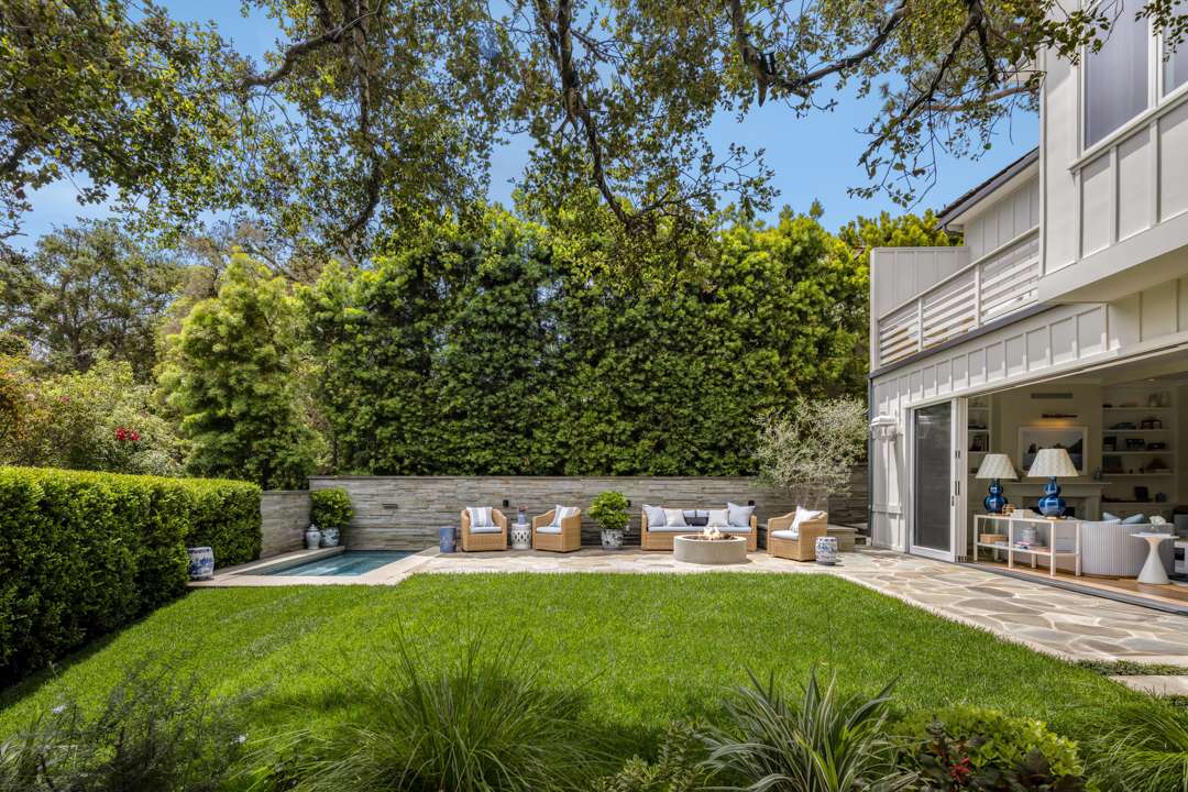 Impeccably manicured, the grounds are picture-perfect from every angle and always ready for an aerial shot. Cementing the property’s getaway vibe, the living room open up to a lawn, spa, pool, outdoor barbecue, and al fresco patio.