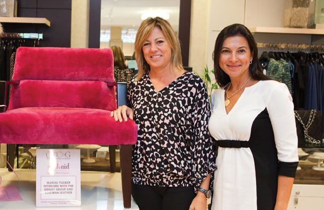 Pink chair designers Susan Glick of Susan Glick Interiors and Jean Marie McLaughlin of JMac Interiors