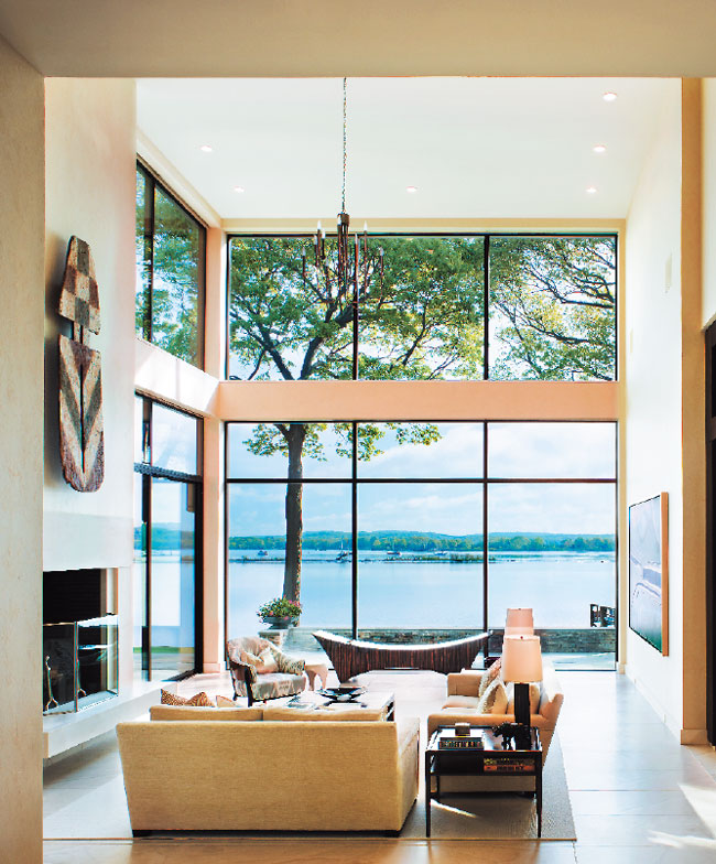 Architect Rick Staub elevated and angled the home for the best views of the Connecticut River; all interior and exterior stonework is by Trowbridge Stone Masonry in Old Lyme.