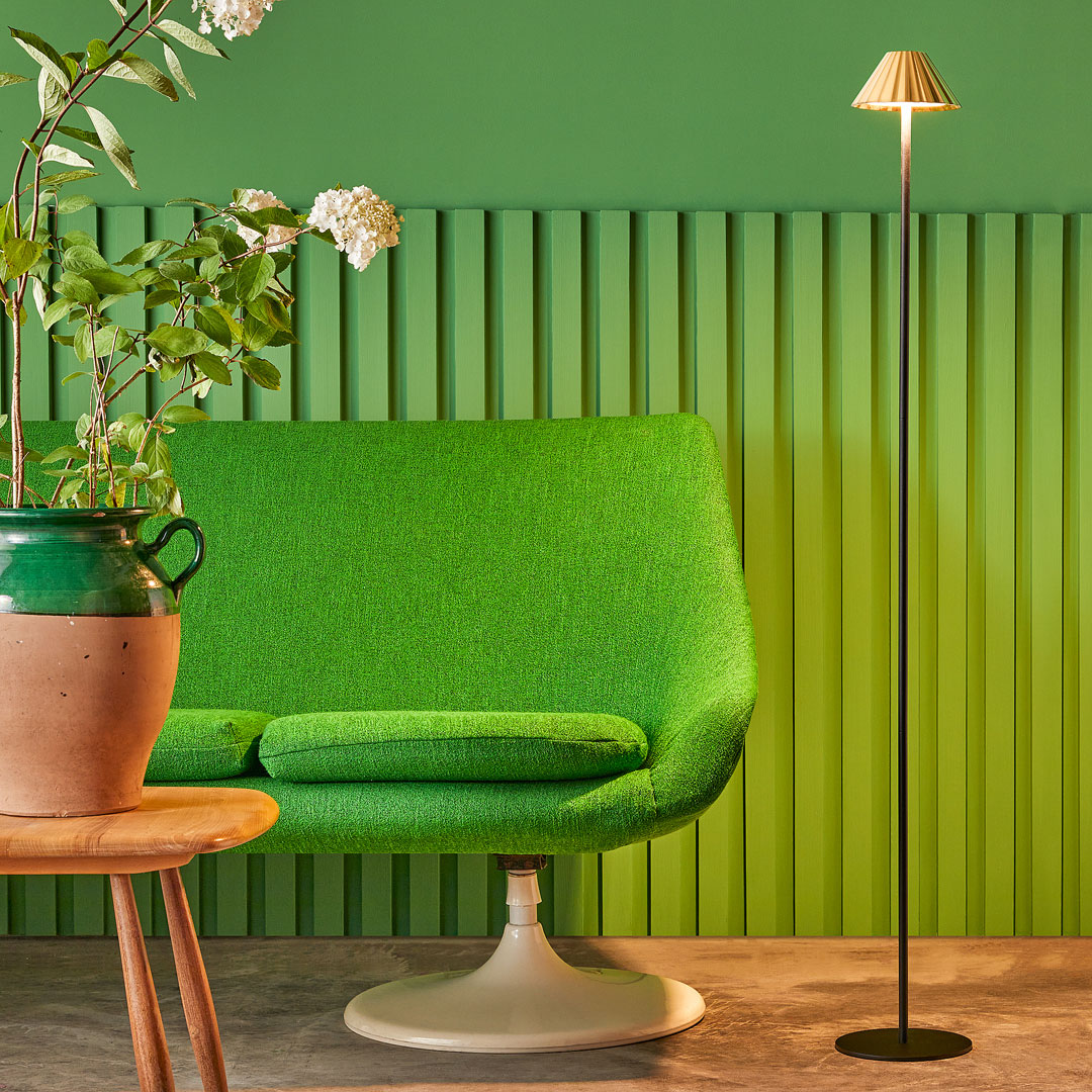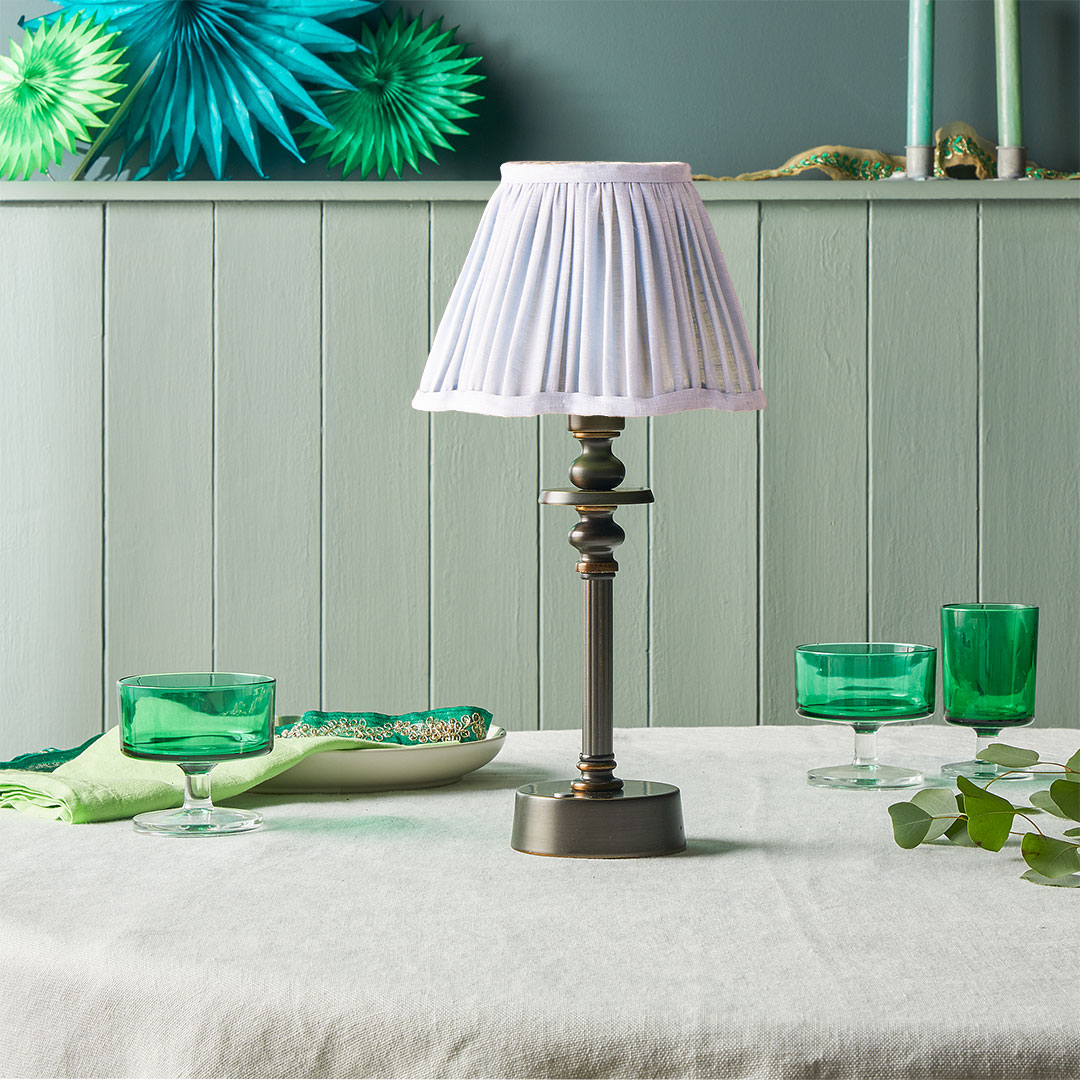 Unlike the routine option of pairing lamps with neutral shades, Pooky sells table and floor lamps and rechargeable lights with a wide range of colorful shades—polka dots, Ikat prints, tie-dye designs—sold separately and in several sizes. Shoppers can mix and match their own particular favorites.