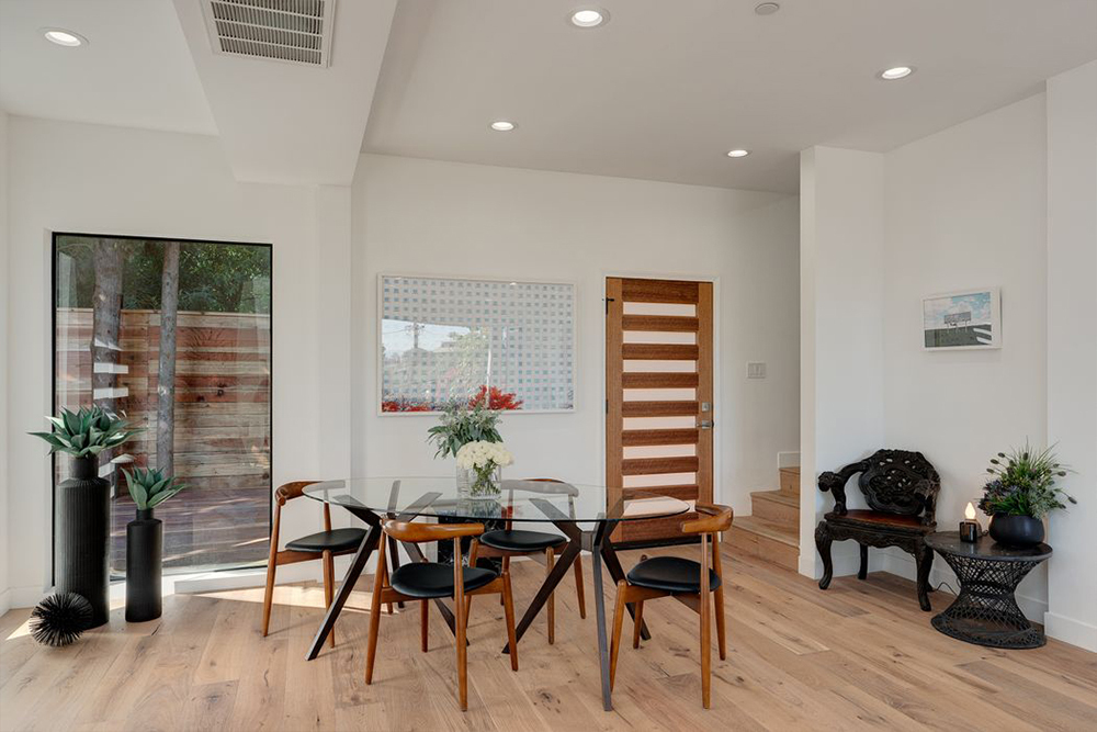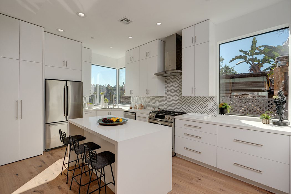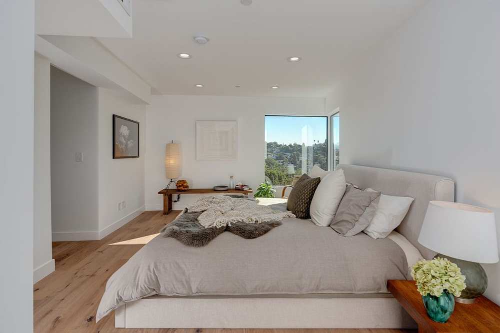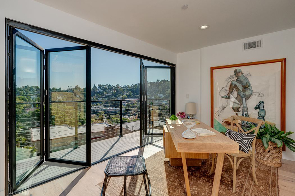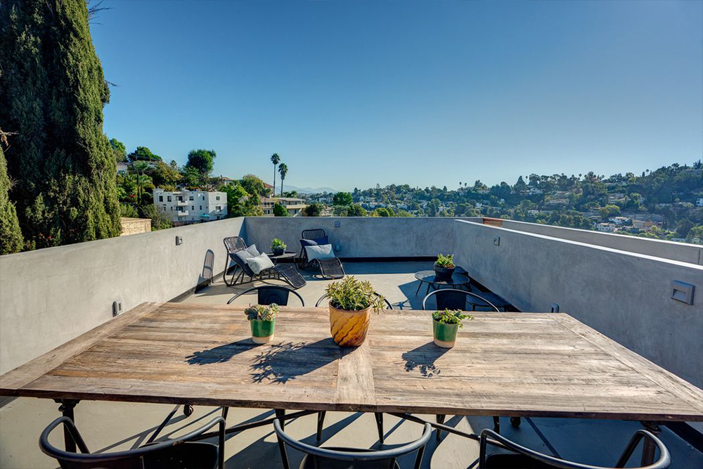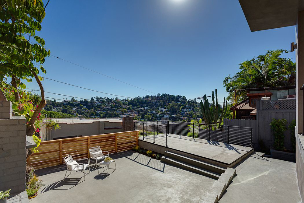 Bobby Berk, a member of the Fab Five on Netflix’s Queer Eye, is seen in glimpses as he frantically, and always successfully, squeezes extensive renovation projects into a weeklong window. The interior designer and TV personality has become known for creating contemporary interiors with thoughtful color schemes, so it should come as no surprise that he and his husband have impeccable taste when it comes to real estate. The pair just proved that by locking down a cool-gray modern in the Franklin Hills neighborhood of Los Angeles for $1.4 million. Variety reports that Berk paid $200,000 above the original asking price, so it must be a worthy home for the recent Emmy winner to enjoy his show’s success.Newly renovated and move-in ready, the 1,600-square-foot villa includes 3 bedrooms, 2.5 bathrooms, and eastern views of the rolling hills L.A. is famous for. Painted in two shades of gray, the home is perfectly suited to Berk’s subtle and sleek aesthetic. Outside, a gate opens onto a poured concrete porch painted to match the home’s exteriors, and a rustic wood deck leads to the front door. Just behind lie the home’s open-concept interiors, with pale hardwoods and clean white walls throughout.Downstairs, the kitchen maintains the home’s ivory color palette while throwing in a bit of contrast with a black-and-white tile backsplash. Of the pad’s two guest bedrooms, one boasts room-wide, floor-to-ceiling accordion glass doors, opening onto a balcony. The master suite includes a walk-in closet and an all-white bathroom with stylish chevron-pattern tiles. A sun-soaked rooftop terrace is accessible via all three bedrooms, offering one-of-a-kind, 360-degree views of the city.The listing, handled by Sotheby’s International Realty, has been removed in the wake of the sale.