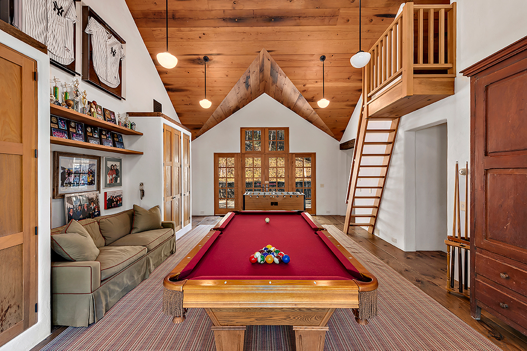 The estate features fabulous indoor and outdoor space for entertaining, including 4 fireplaces and a secluded guest cottage. The 6,200-square-foot main house has something for everyone and everything for someone, with a wine cellar, recreation area, library, gym, pool, and tournament level tennis court. This incredible property will transport the fortunate owners to the mountains of Colorado or a village in Provence, all just an hour’s ride from NYC.