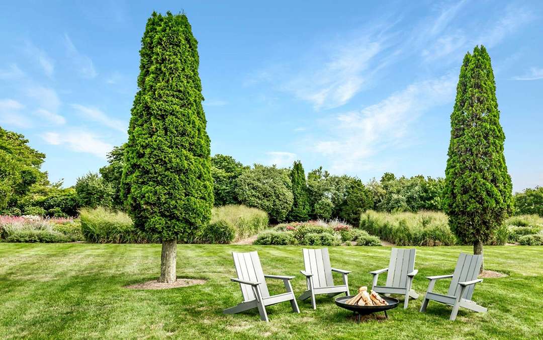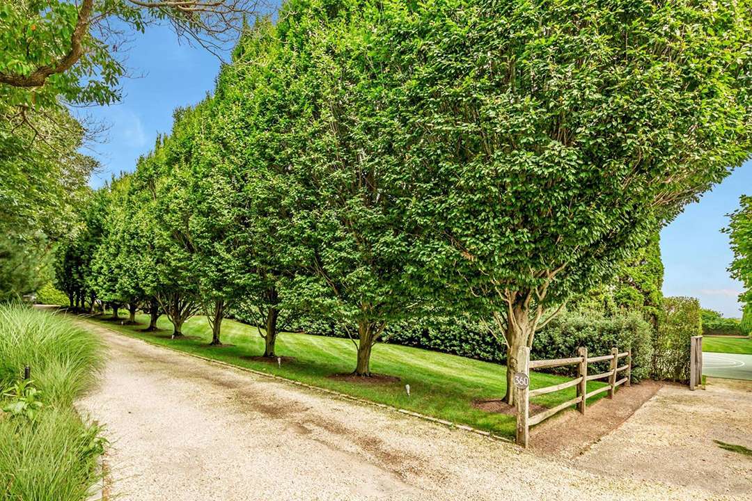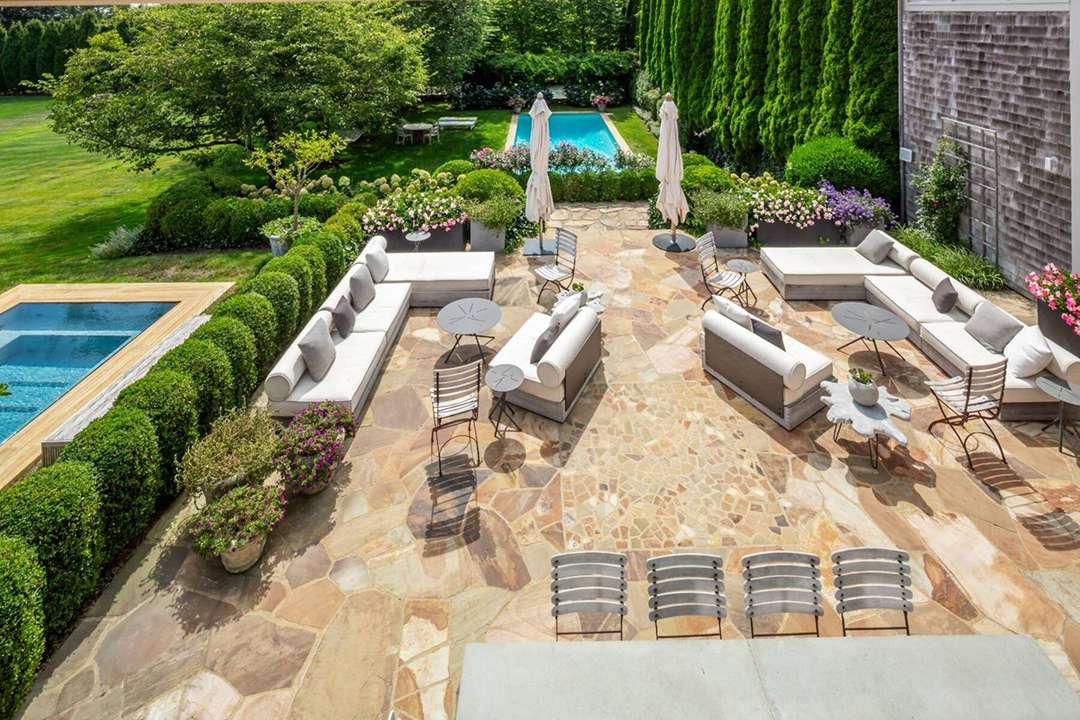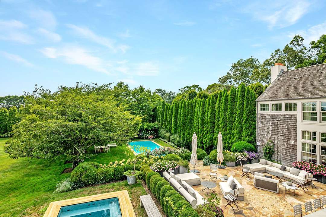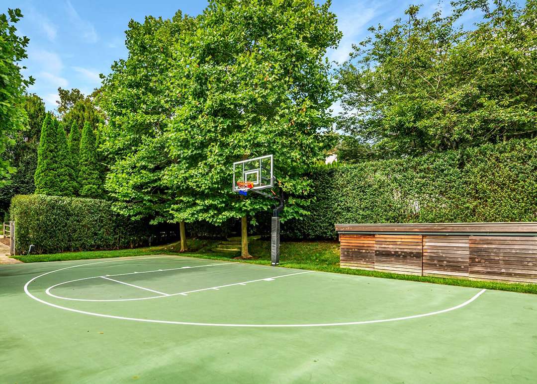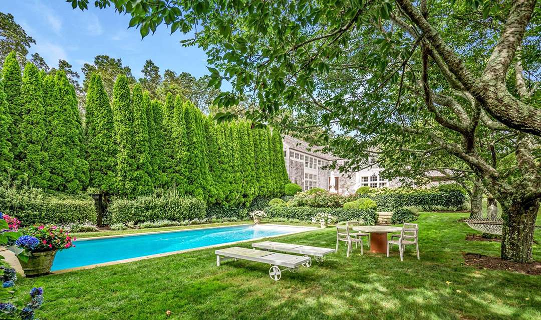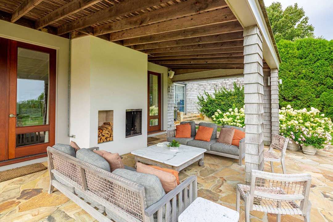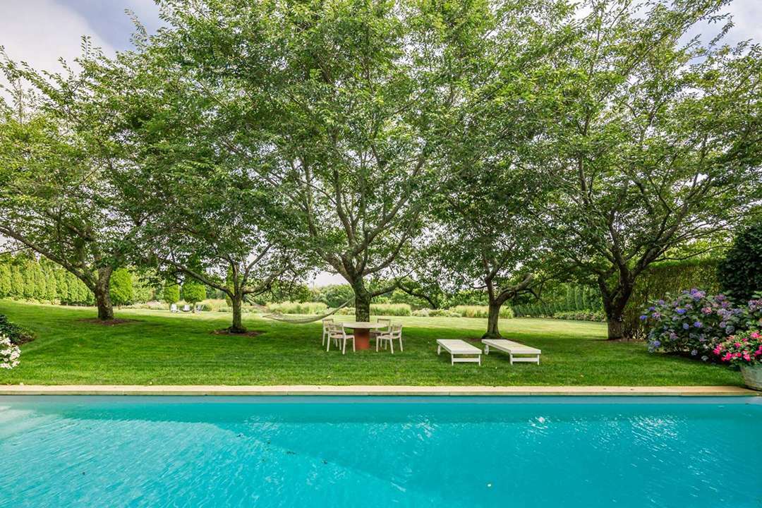 It wouldn’t be a home in the Hamptons without ample outdoor living areas, and this home is ready for all your alfresco lounging. A stunning pool and nearby spa sit around a beautiful patio. Further down the property is a fire pit, set on the flat lawn and looking like an elegant campfire.