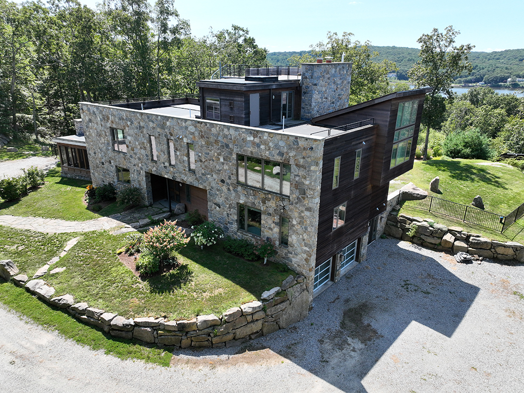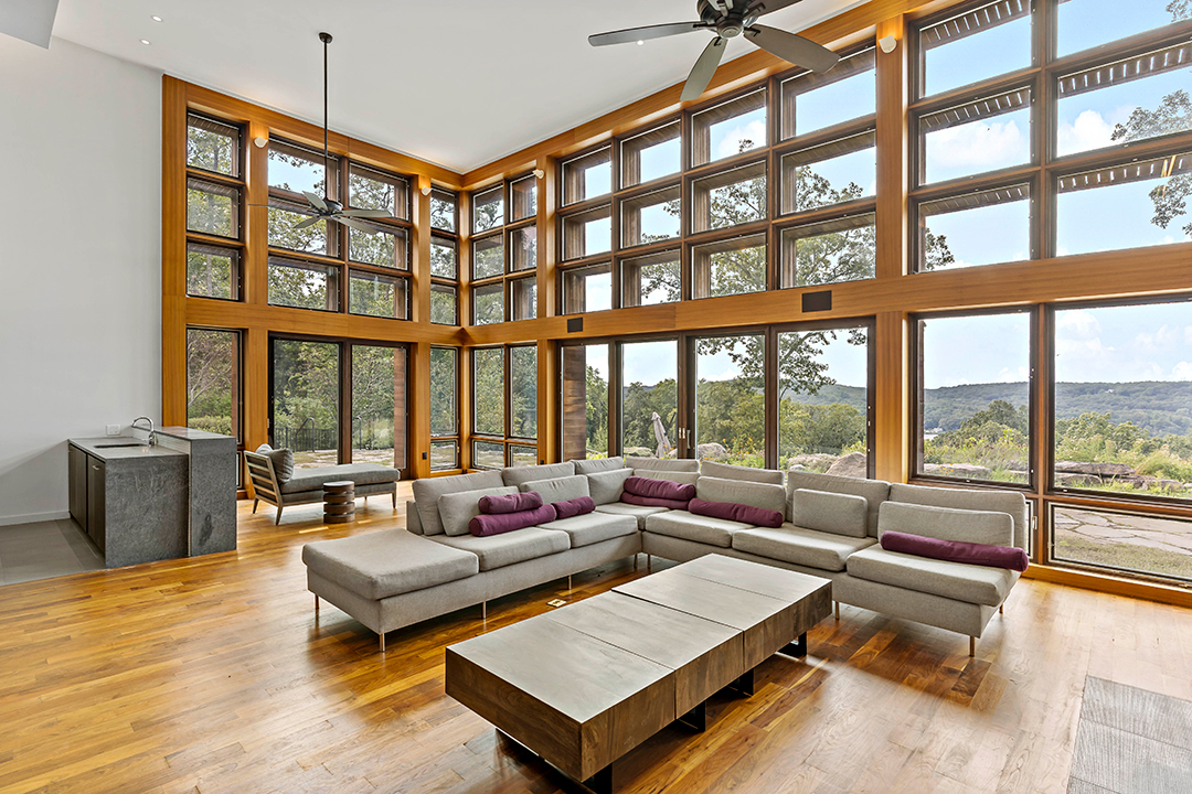 Perched on a cliff above the Connecticut River, a dramatic contemporary home has come to the market for $4.25 million. The late, award-winning architect Stephen Jacobs designed the captivating stunner, which is rare as his portfolio mainly encompasses high-profile, public projects such as the Hotel Gansevoort in New York City and the Holocaust Memorial in Albania.