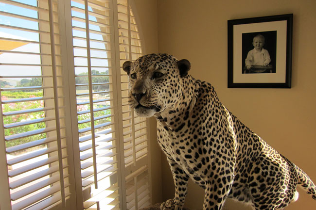 When her winemaker Greg Bjornstad added that they also see an occasional mountain lion, my fear reached a high pitch—but fortunately another glass of Chardonnay calmed me down. We were drinking Pfendler unfiltered Chardonnay ($38) made from grapes grown on Kimberly’s 19 snake-ridden acres on the western slope of Sonoma Mountain and later, her elegant Pinot Noir ($45). She brought in the chef and owner, Matt Strauss, of the new Heirloom Café in San Francisco to cook a multicourse dinner—cuisine so good that it further distracted me from the idea that only thin walls separated me from the wildlife. Taxidermy was ubiquitous in her gorgeous villa. Not only did I confront a life-sized stuffed leopard upon entering the living room but I was also treated to the photo album, pages upon pages of African big game, which her late husband, Peter, had shot before his own untimely death.