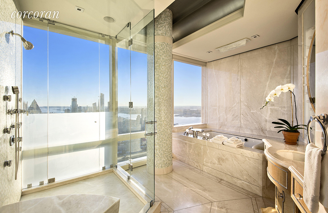 If anyone knows what lavish New York homes look like, it’s real estate developer and Miami Dolphins owner Stephen Ross. It seems he admires the high-profile projects he completes so much that he ends up buying there. Such was the case with the 8,500-square-foot penthouse atop the 2000-built South Tower of Time Warner Center. Now that Ross’s firm, Related Companies, has launched the monumental Hudson Yards, he is looking to sell the opulent Central Park residence for $75 million and move into a penthouse there.While there’s no doubt Hudson Yards is the hottest building in town right now, Time Warner Center is still a dream place to live. And if the building is a dream, Ross’s penthouse is euphoria. It offers 5 bedrooms, 6.5 bathrooms, and a staff bedroom and bathroom, and those are just the basic stats. The lucky new owner gains unparalleled city views, from the park to the river, through walls of windows throughout the home. The light-filled apartment is also wired for sumptuous smart living, which is epitome of modern luxury.On top of having the prestigious 25 Columbus Circle address, the penthouse also gives you tons of exciting amenities. No wonder Ross always wants to buy apartments at his projects, they have everything you could ever want in a city home. While it’s difficult to keep count of the spectacular perks, they include a 24-hour doorman and concierge services, valet parking, a landscaped terrace with river views, a massage room, a state-of-the-art fitness center, a swimming pool with city views, and access to the Mandarin Oriental’s five-star Zen spa services.If you have $75 million to spend and want to check out this ornate pad, contact Deborah Grubman, Deborah Kern, or David Adler of The Corcoran Group. All three agents share the listing, which Mansion Global first reported hit the market.