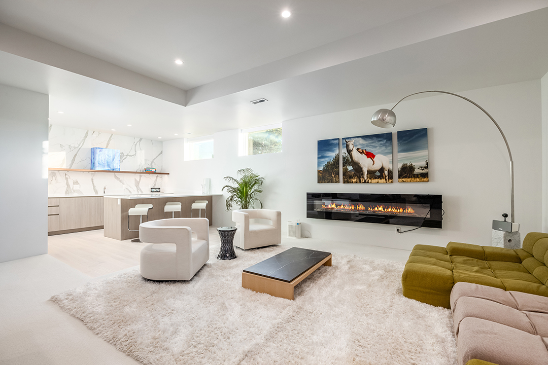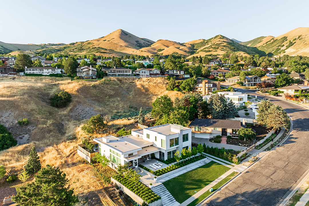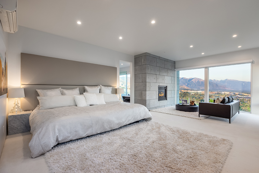Buyers interested in the reality TV star’s Salt Lake City pad can expect to find four bedrooms, beautifully landscaped outdoor spaces, and bright living areas. The heart of the home is the huge room you enter right at the front door. Boasting an expansive modern kitchen, a dining area, and a cozy yet grand living area grounded by a floor-to-ceiling fireplace, it’s ideal for easy gatherings or glitzy affairs. Best of all, this cavernous room has huge walls of glass, so mountain ridges in the distance are just part of the decor.