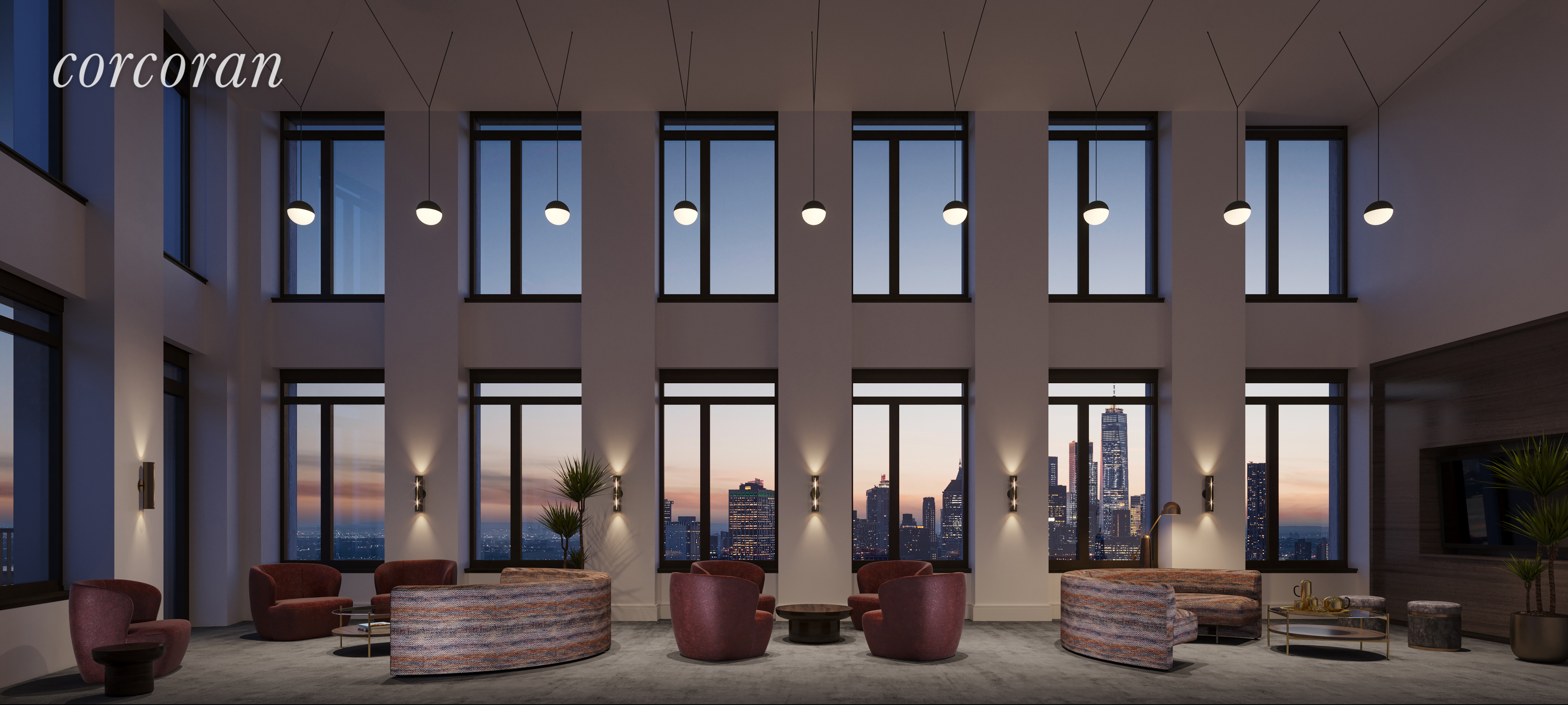 Building amenities include a full-service staff, 2,000-square-foot fitness center and landscaped terrace, yoga studio, media room, and indoor and outdoor children play areas. One Clinton also has a double-height sky lounge and terrace for residents to enjoy skyline views.