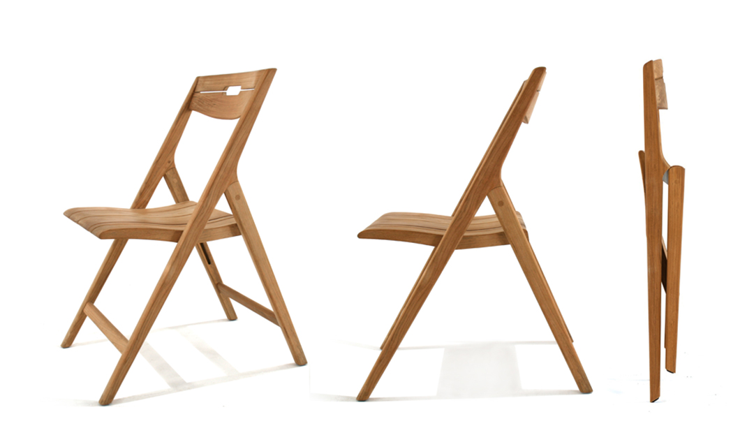 Clean lines, welcoming curves, and the organic feel to the touch of its smooth rounded edges give the Surf Folding Chair its immediate appeal. First impressions hardly reveal that the exceptionally comfortable chair folds effortlessly. Though visually robust and generously scaled, it is relatively lightweight yet structurally strong given its solid teak stature, allowing this chair to endure the test of time and the outdoors. With a graceful stance and statuesque silhouette, the Surf folding chair will fit beautifully anywhere: on a super yacht, at a dining table, on a sun-drenched terrace, or extra seating whenever you need it.