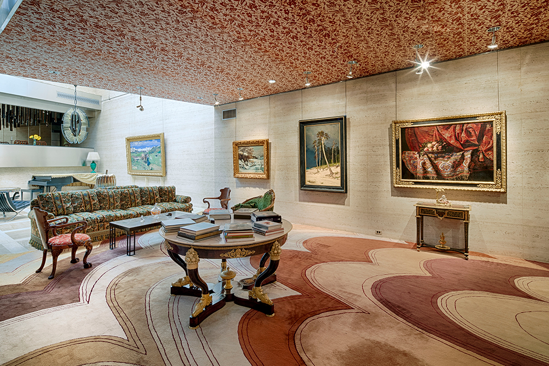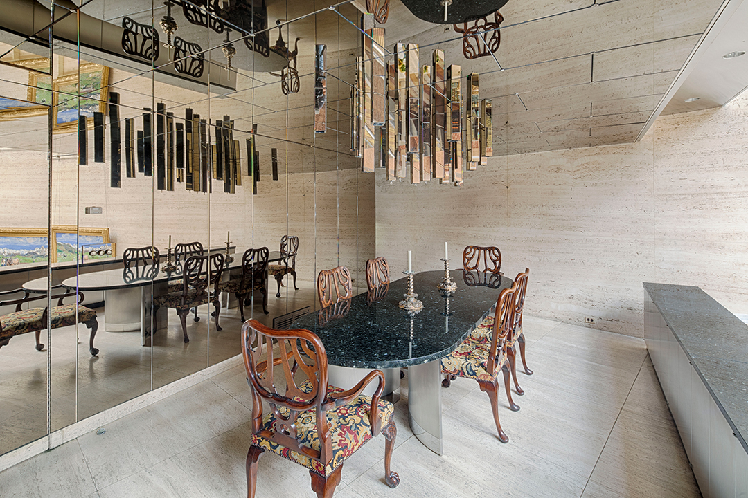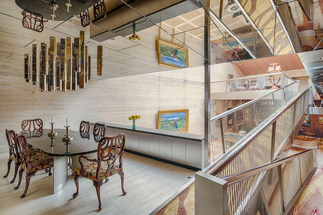 Extraordinary homes often represent the vision and personality of their owners, and perhaps none more than the tour de force of inventor Sherman M. Fairchild at 17 East 65th Street. As the son of the Chairman of IBM, Mr. Fairchild had the good fortune (literally) to inherit his father’s IBM stock when only 27 years old, and remained its largest individual shareholder until his death in 1971. Rather than just living the good life, he combined his interest in aviation and photography to become the defining force in aerial photography with over 30 patents and played an integral role in the development of Silicon Valley. His creative passions are obvious in this dramatic home created by architects George Nelson and William Hamby. Built in 1941 to “break the mold of architectural convention,” it became one of the first modernist townhouses in NY and remains as innovative and iconic as its namesake. Now, this piece of history in Lenox Hill is on the market asking $35 million.The 9,440-square-foot manse is best understood when interpreted as two houses in one. The 100-foot-long lot was split into two halves, with the front being designed more for entertaining and the back created to be a private haven. The front spaces are an architectural feat with a brilliant courtyard featuring a four-story great room flooded with natural light from an entirely glass ceiling. Spectacular travertine wall space for the most prolific and discerning art collector, it also provides the ‘landscape’ for glitzy NYC parties. Floating staircases give access to all the entertaining spaces, including a viewing gallery, a chef’s kitchen and a formal dining room.A second rear staircase accesses the home’s 25-foot wide private living space, with a master suite, two baths and sitting alcove, and four additional bedrooms, including a loft aerie infused with the same ceiling light as the home’s great room. In true mansion style, there’s a breathtaking office, library and wine cellar. All this luxury is encased in an architectural unique shell. Postmodern architect Milton Klein completed the building’s contemporary red granite façade in 1981.This house will be music to a history lover’s ears. Since Fairchild was also a jazz enthusiast, famed composer Hoagy Carmichael was a frequent guest here, playing on one of the two white Steinway pianos Fairchild had wired to his recording studio. Several jazz albums from the day credited Fairchild Studios as a recording partner. Located between Fifth and Madison Avenues just steps from Museum Mile and Central Park, this extraordinary townhouse is waiting for its next chapter of entertaining history.Erin Boisson Aries and Nicola Bottero of Christie’s International Real Estate have the special listing.