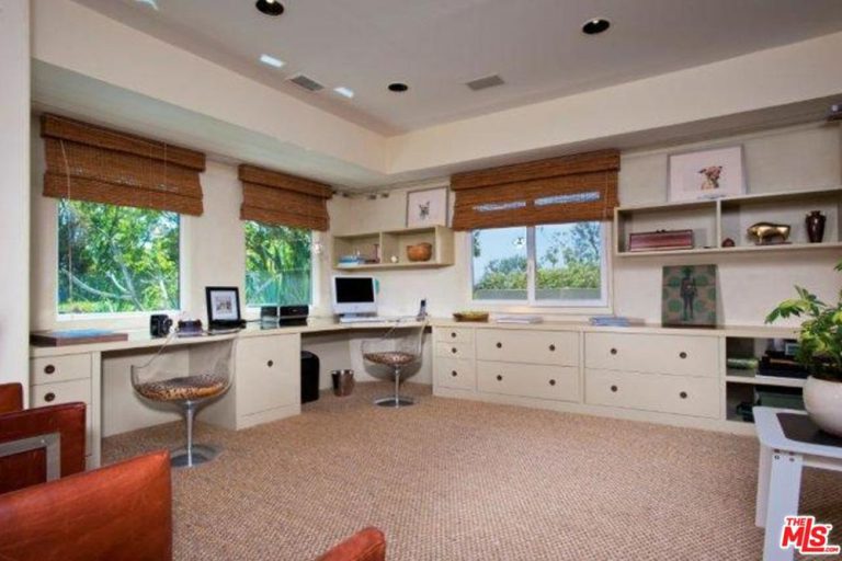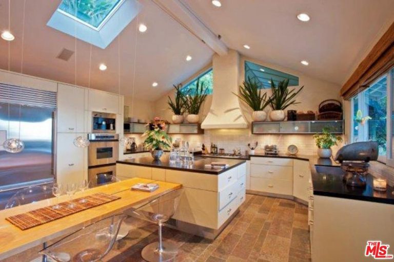 Sandra Bullock is offering her Sunset Boulevard home as a rental for $15,000/month, reports Trulia, down from the $18,500 it was going for in 2015. Behind a stucco exterior, the contemporary home has a large eat-in kitchen, an office, a luxuriously appointed master suite and 2 additional bedroom suites. The private lot also includes a stone-heated pool, a spa and a lanai. This house, modest by celebrity standards at 3,000 square feet, is not Bullock’s primary residence: she bought a Beverly Hills estate in 2011 for $16M.