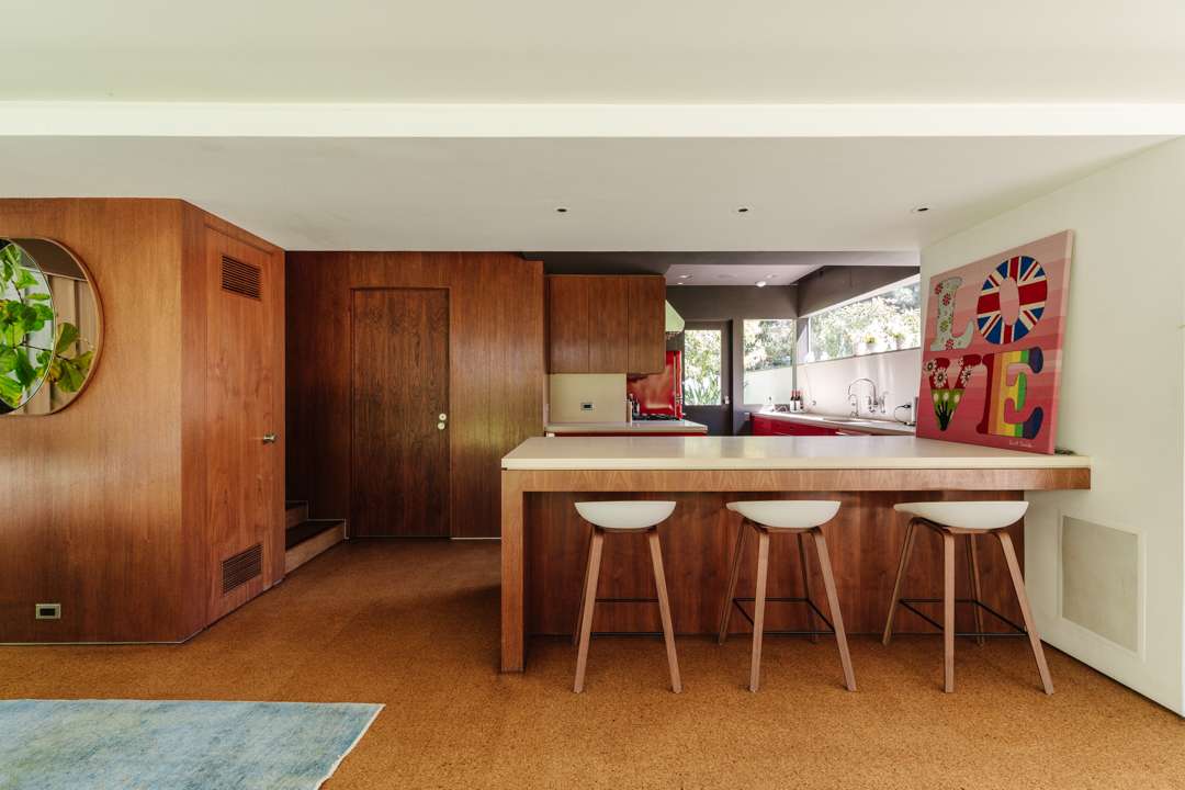 While the residence was originally designed in 1948 as an affordable and modest starter home, it has most recently been owned as a part of a larger estate. In fact, the rest of the property—an eco-friendly five-bedroom home built by Sam Simon, the late co-creator of “The Simpsons”—is on the market for $16.5 million. The seller, a former fintech CEO, is selling the two structures as separate listings. “They are two incredible houses with different sensibilities. They deserve to be marketed separately,” agent Frank Langen of Compass shares.