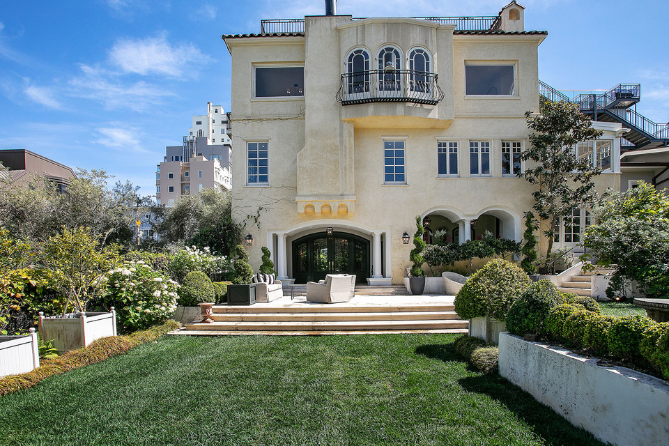 The grand manses of San Francisco are notoriously enviable—pocketed within the city’s rolling hills and overlooking the Bay, these homes are spacious without fail and almost always come with a little slice of history. Few and far between, we featured one such listing back in September, once owned by Vanessa Getty. Another has now made its way to the market, a sweeping and stately corner mansion and the crowning glory of Russian Hill’s Hyde Street. Asking $13.8 million, the home is as remarkable for its story as it is for its soaring scale.Constructed in 1900, the home was designed by legendary Bay Area architect Willis Polk, a wunderkind who assisted in San Francisco’s master plan. After original owner Frances Stevenson, a socialite and the widow of author Robert Louis Stevenson, sold the home in 1908, it was significantly expanded and transformed into a convent; the nuns in residence are said to never have been seen in public. The current owners brought in architect Joe Farrell to modernize the home’s amenities whilst maintaining Polk’s turn-of-the-century vision.As it stands today, the home, dubbed the Robert Louis Stevenson house, is indeed a lavish fusion of luxury sampled from several periods of San Francisco’s history. The Mediterranean exterior, with an arched entry and arched paired windows, Polk’s signatures, remain almost exactly as they were when he conceived them. A grand staircase ascends the home’s three levels, each steeped in terra cotta, French windows, and lush green spaces. The Golden Gate and Bay Bridges, Alcatraz, and Treasure Island are all within sight, the latter three in a 360-degree turn around the third floor great room.For more information on this sparkling San Francisco spread, Nina Hatvany of Compass has the historic listing.