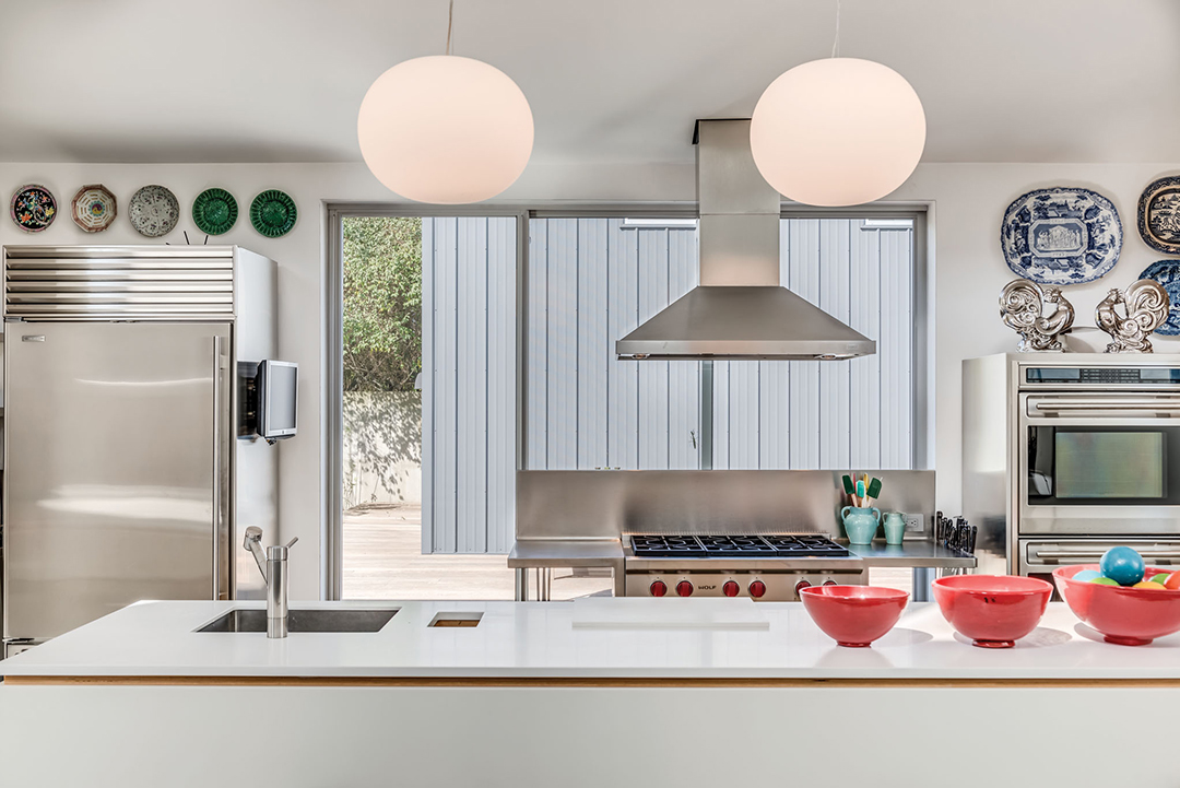 A one-of-a-kind Hamptons residence that was featured in the July issue of HC&G is now on the market for $3.495 million. Co-owned by Tony-winning actor Rob Rifkin and playwright-screenwriter Jon Robin Baitz, the Bridgehampton property sits sandwiched between the homes of actors Ken Olin and Patricia Wettig, on one side, and Broadway director Joe Mantello on the other, making it an incredibly private artist’s escape. Friends and colleagues, Olin, Baitz, Rifkin, and Wettig all worked on the television series Brothers & Sisters together whilst sharing property lines.The compound was Mantello’s brainchild; he yearned for a “compound for like-minded theater-world souls.” Rifkin, Baitz, and their respective partners scooped up the adjacent parcel of land, and artist Jack Selgic, who has also been featured in HC&G, got to work designing their loft-like, modern haven. The result is an exquisite, 4,600-square-foot compound that blends the style of a classic Hamptons barn with that of a more urban loft (see more photos here!).The main house, a 4,200-square-foot stunner, consists of two parallel structures flanked by a deck and pool courtyard on either side and connected by a stainless steel kitchen. One contains two ensuite bedrooms and a library, while the other is an ideal gathering space since it boasts one fifty-foot long room with twenty-foot ceilings. A guesthouse offers Baitz and his partner privacy amidst the communal living.Susan Penzner and Myles Reilly of Saunders & Associates have the striking listing.