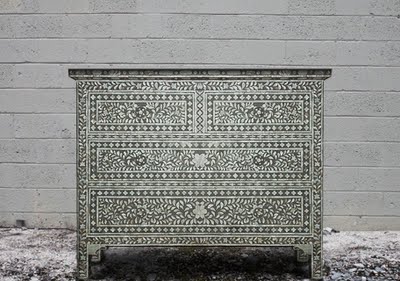 Yes, it is everywhere, but I love the mother of pearl inlay, ancient printing techniques and rustic, weathered feel of it all. Since this is the case, I had to share Sang and Serena with you. Sang Won Hwang and Serena Sandra Weaver call their pieces “transmodern”, fusing age – old techniques, exotic materials, and eco friendly aims. Furniture inlaid with intricate patterns and floral block printed quilts capture the best handiwork Indian craftsmen have to offer.