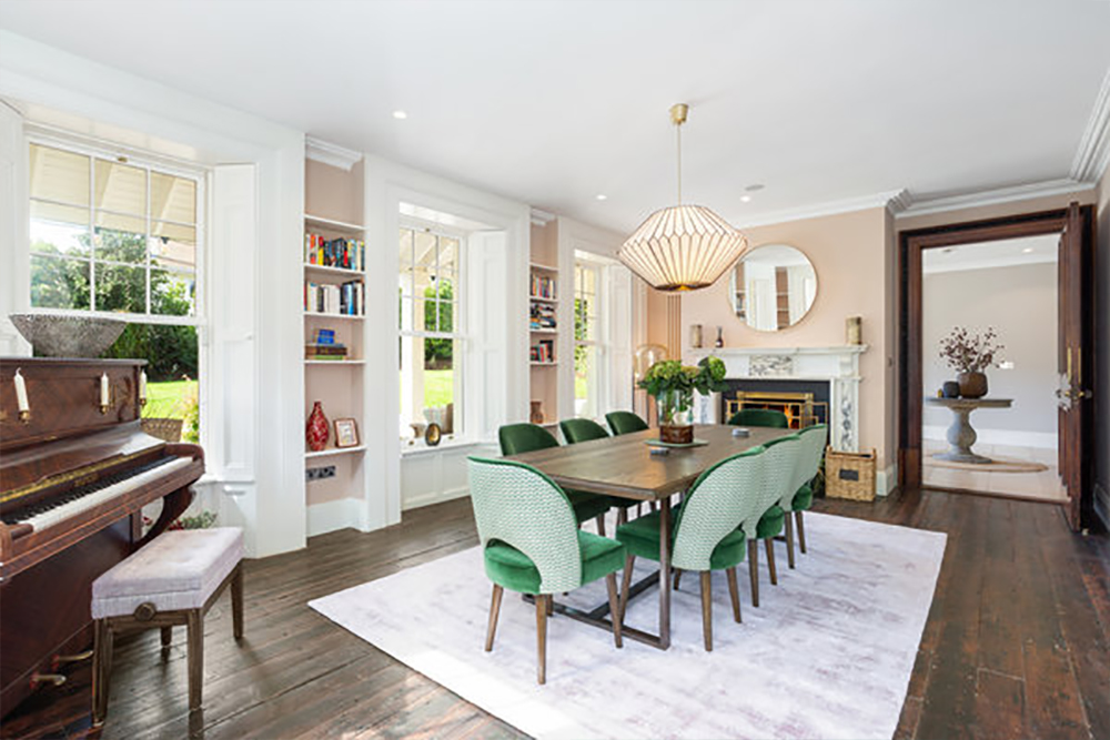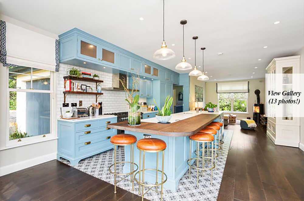 This Golden Globe winner and Lady Bird star is flying the coop, that is, letting go of her chic home in Ireland. For two years, the talented Irish actress has owned this sweet spot in the exclusive Greystones coastal community just 20 miles from Dublin, but as her success has sky rocketed, she is spending time elsewhere. Now that the star has a home in London’s Notting Hill neighborhood, she is ready to say goodbye to her charming Irish residence and wants approx. $1.66 million, or €1.5 million, for it.The Edwardian-style home known as Pine Lodge wasn’t nearly as glamorous and airy when Ronan nabbed it. With taste as impeccable as her acting, the celebrity extensively revamped the circa-1970s, 4,800-square-foot house so that it now looks fresh, bright, and even a little groovy. The blue kitchen with funky tiled floors and leather stools is a perfect example of where Ronan infused her style. This space feels retro yet modern, which is tough to pull off.The open floor plan has a natural flow for entertaining and a constant connection to the outdoors. If it’s not raining, which is a big “if” in Ireland, the new owner can have exquisite garden parties or take a quick walk to the coast, which is just a few blocks away. Privacy is pivotal here, too, as the house is tucked behind electronic iron gates.With five bedrooms and five bathrooms, this home has plenty of room for a buyer who loves to host visitors, or, perhaps someone with a big brood. Plus, there’s no major work to be done since the actress went ahead and updated everything for you. Although, feel free to keep customizing since there is room for a home theater, gym, or additional kitchen on the second floor.To nab this celebrity listing, get in touch with Barry Connolly of Galvin Property. The Irish Times first reported the house is for sale.
