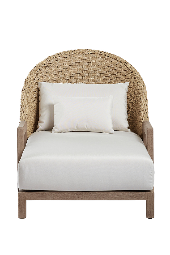 Fashioned after Jenni Kayne’s indoor Brentwood chair, the outdoor version brings her signature aesthetic of comfort and refinement to open-air rooms. Upholstered in performance textured linen, the chair is constructed with a marine-grade plywood frame and solid teak legs. Brentwood chair, $3,495; ottoman, $1,995.
