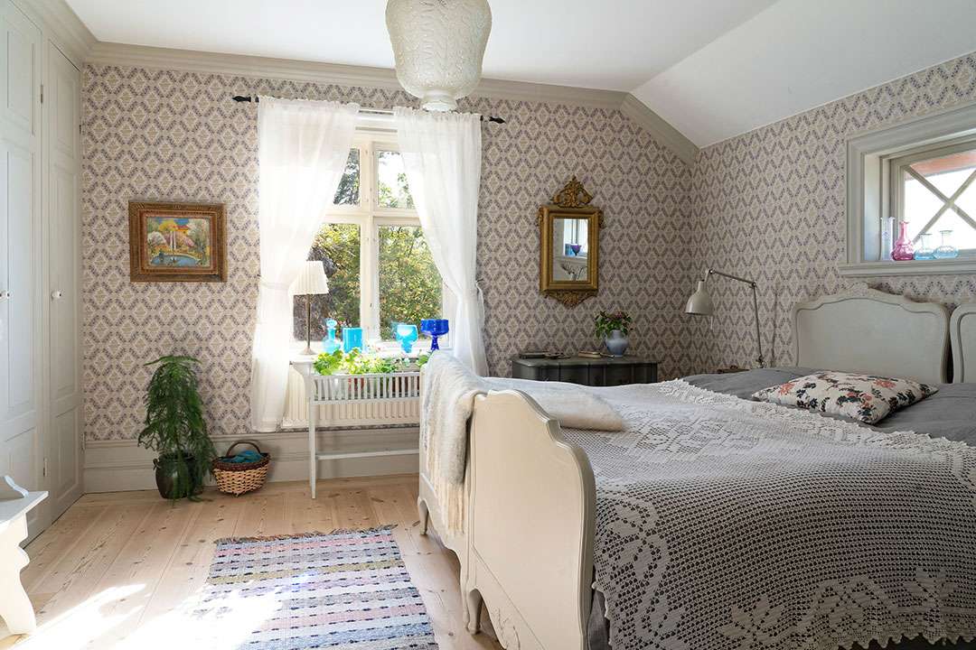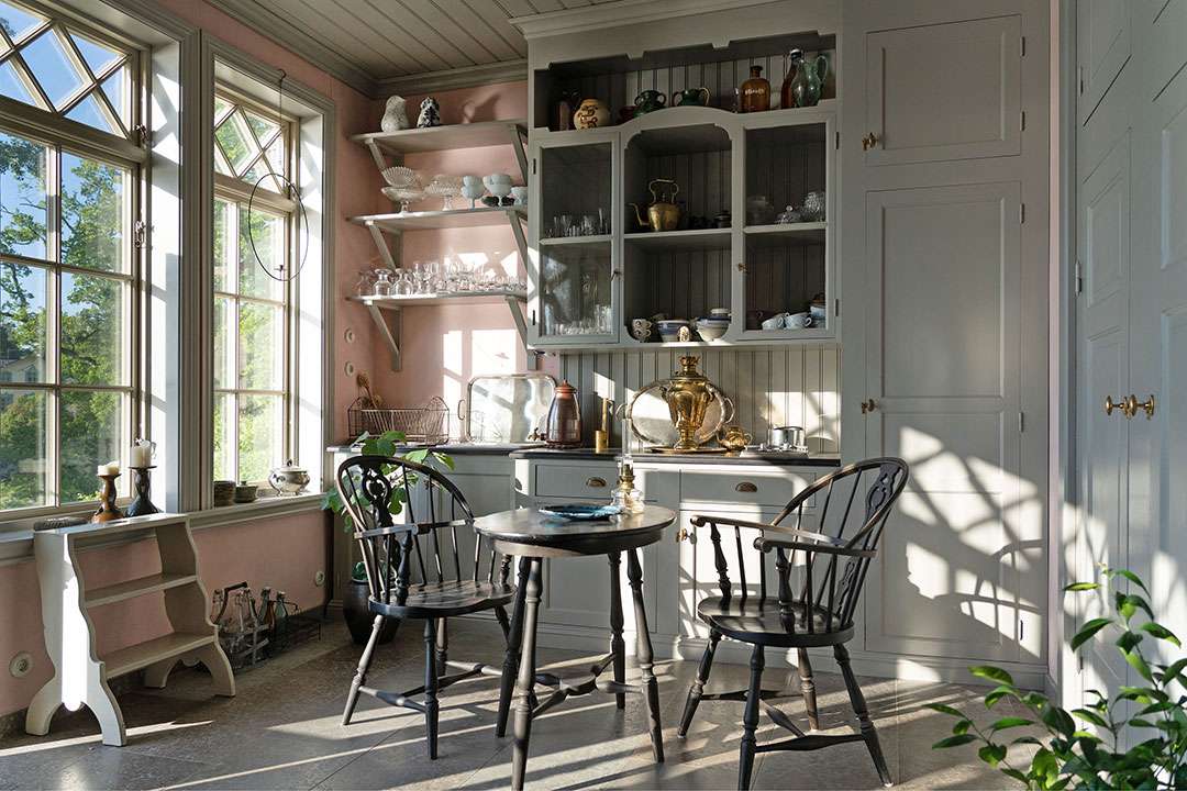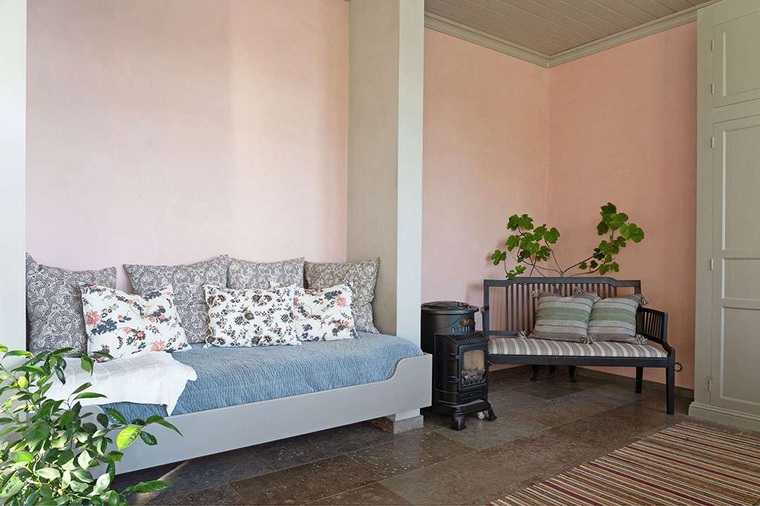 The pink, circa-1884 villa itself totals two bedrooms and boasts both charming and majestic living spaces. You may have heard of the viral interior trend of hygge, which hails from Denmark, but this dwelling appropriately channels mys (meaning “coziness” in Swedish). The inviting interiors, dressed with pale hues, plush textures, and antique touches, seem ready to wrap you in a hug all year long. Notably, the kitchen even includes a Swedish kakkelovn, giving the house an even greater sense of place.