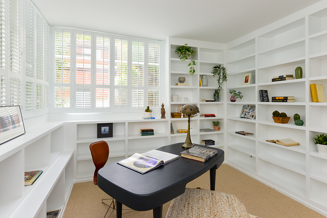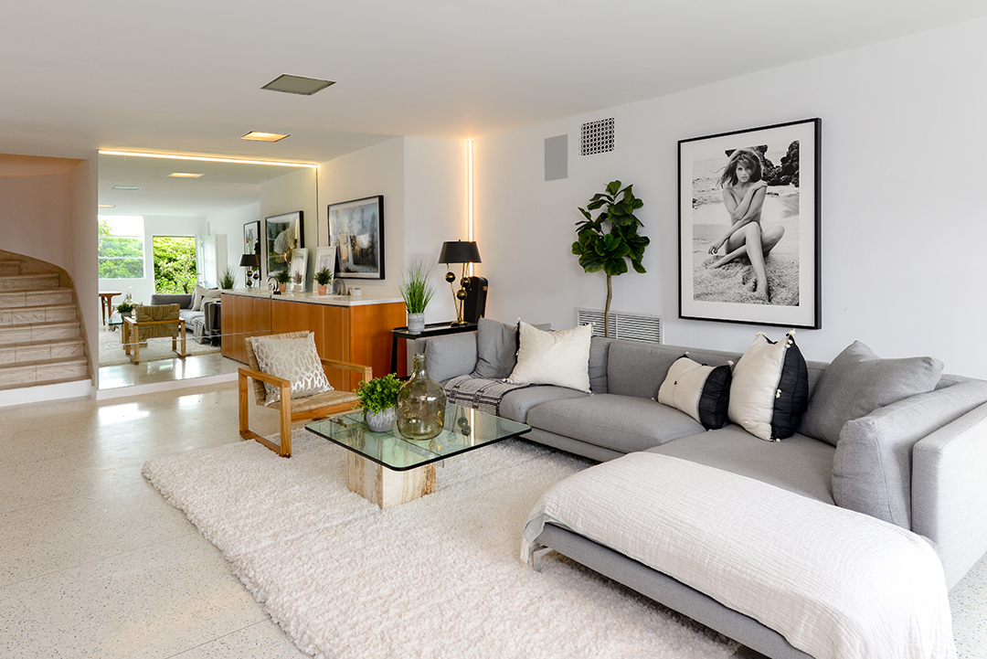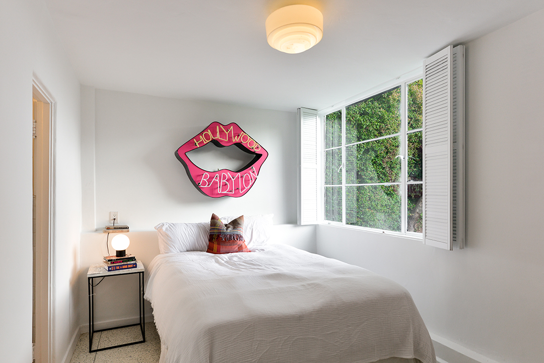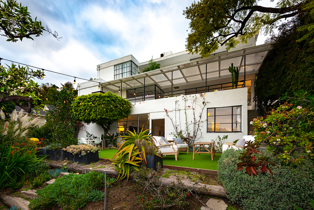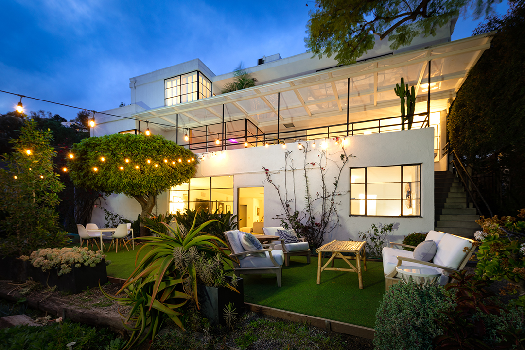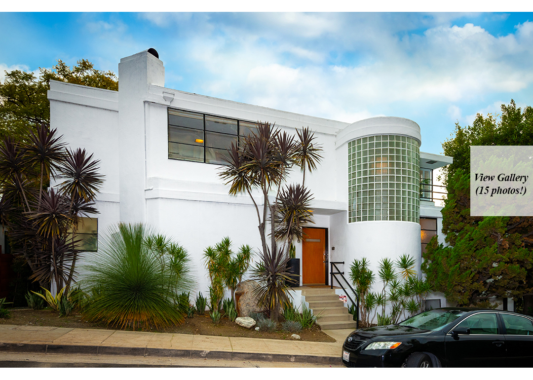 One of the few remaining residences in L.A. designed by renowned architect William Kesling has just hit the market. Located in the Los Feliz neighborhood, ULM house was built in 1937 in Kesling’s aerodynamics-inspired Streamline Moderne style. Scissor Sisters co-founder Jake Shears purchased the home in 2013, and has now listed it for $2.248 million.Much like the airplanes by which Kesling was inspired, the views from ULM house are soaring; encompassing Los Angeles’s iconic city lights and extending out to the Pacific Ocean. The real show-stopper, however, is the home itself; three stories of Art-deco white stucco. Three bedrooms and four bathrooms are contained in the 2,309-square-foot home, as well as a two-car garage at street level.Kesling’s original details remain throughout the home, including colorful bathroom fixtures and tiled walls. A glass block window illuminates a classic Kesling winding stone staircase, and the kitchen features wood cabinetry done in a light natural finish. Also downstairs are a guest room and terrazzo-tiled family room, equipped with a wet bar. One room over lies the living room, centered around a fireplace and opening onto a terrace, which itself looks down on the lawn below. Upstairs, the master suite boasts a private balcony perfectly suited for soaking in those views. Penny Muck and Nancy Osborne have the listing for this one-of-a-kind home.