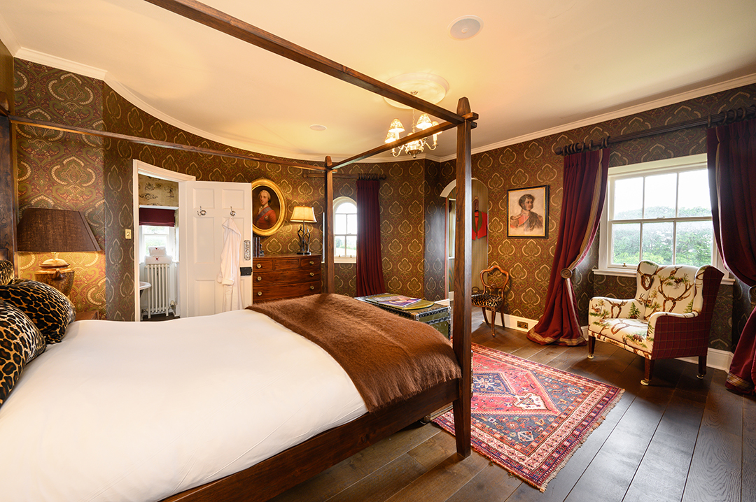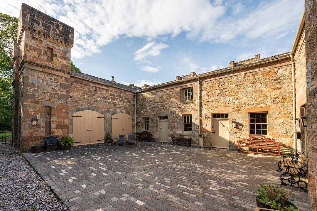 The six-bedroom central house is flanked by east and west wings made up of self-contained apartments offering three bedrooms each. These are known as Darnley Cottage and Bothwell Cottage (named after Mary Queen of Scots’ husbands). Throughout the castle, there are expected regal spaces like a billiards room and formal dining room, but also some surprising spots in the shadows. Up a secret staircase, a hidden bedroom suite with a romantic atmosphere can be found for those who know the way. One of the wing’s is adjacent to the working stables and coach house, where the estate’s private tavern bar now sits, too.