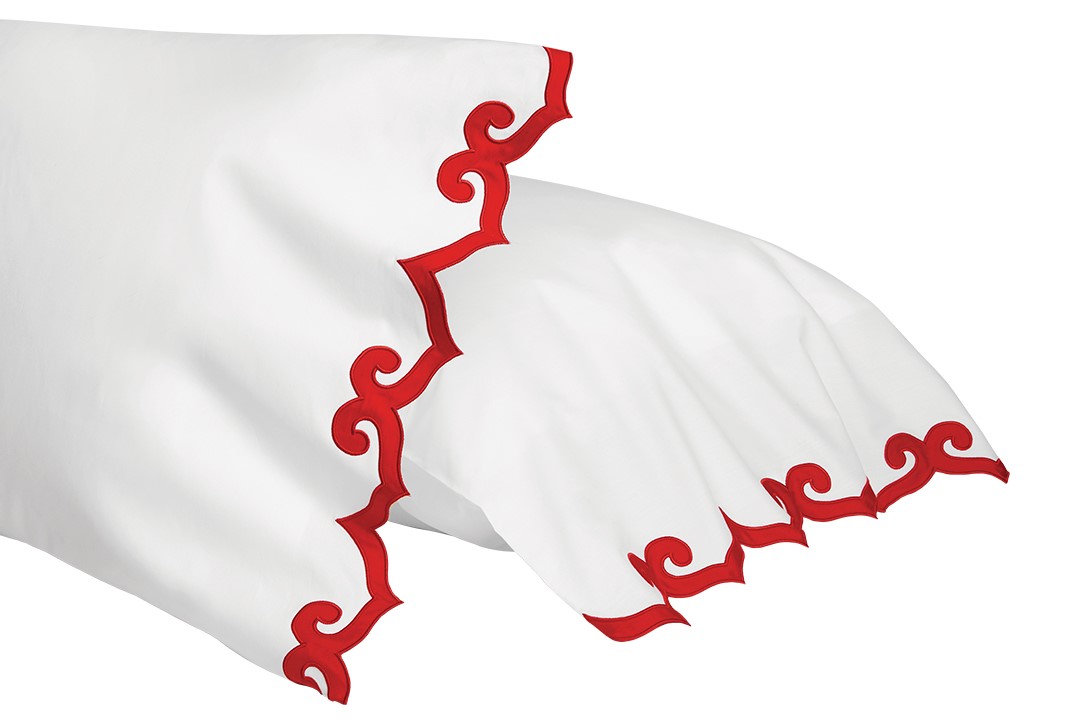 The iconic Italian linens company Pratesi, for example, took the road to Morocco to arrive at its sumptuously detailed new pattern, Marrakesh, featuring a bold Moorish-inflected ogee curve on crisp white Egyptian cotton,