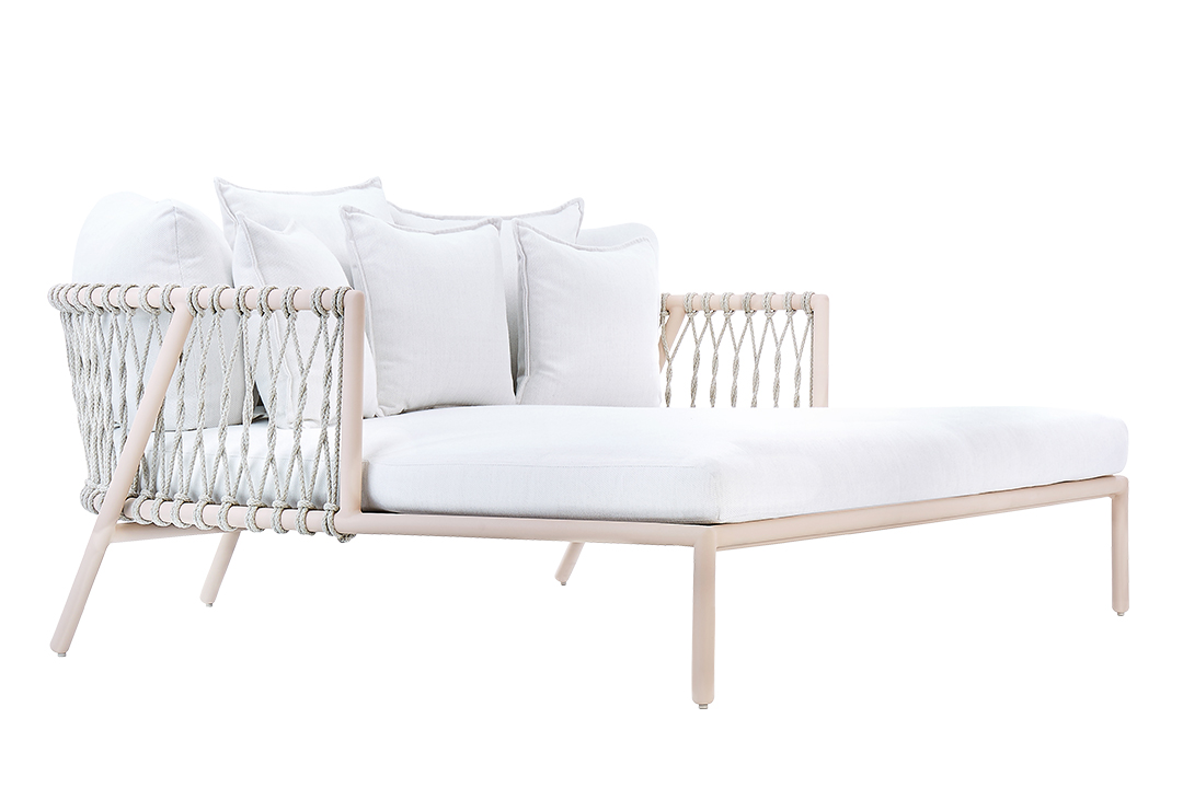 Designed in collaboration with Ann Marie Vering, the Oscar Daybed features a curved frame, and the multi-dimensional rope design is striking from any angle.