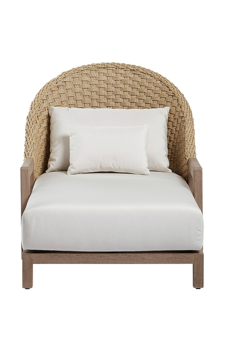 The Easley outdoor chair features an oversized frame in warm, honey-stained teak wood.