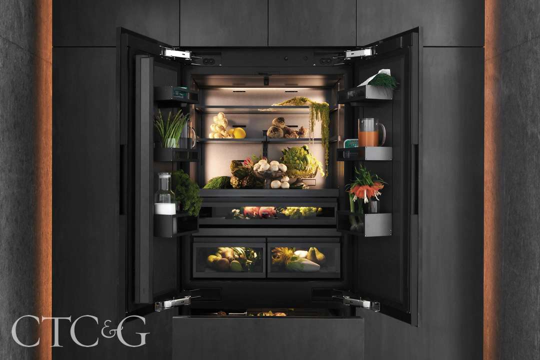 The latest generation of cooling from Gaggenau combines design and performance with its furniture-like appearance in dark brushed stainless steel, push-to-open functionality, integrated pocket handles and warm stage lighting. The refrigerator-freezer is also available panel ready to blend seamlessly with cabinetry. Available through Aitoro Appliance for $13,999.