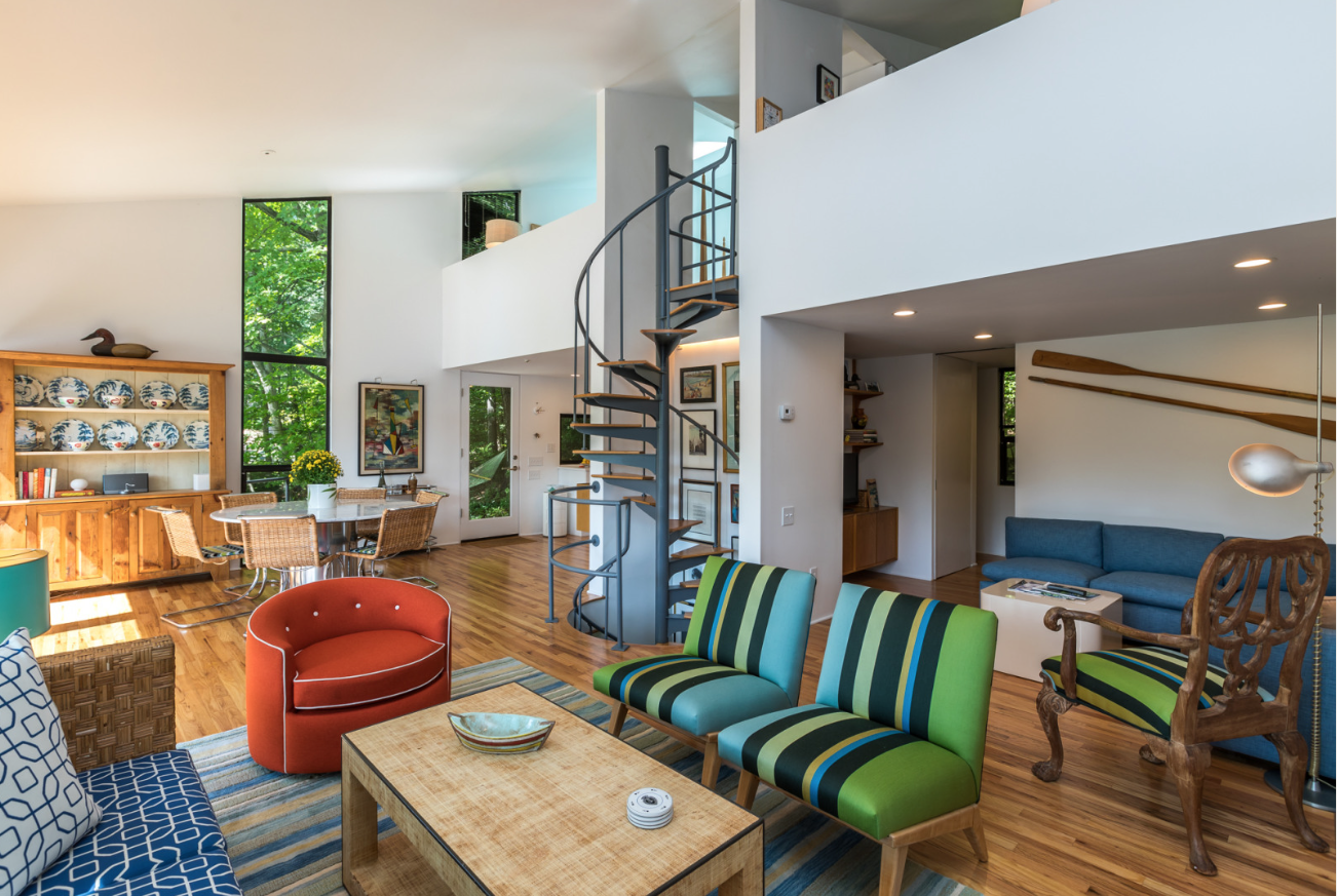 Inside the two-bedroom, two-bathroom dwelling are fully renovated, open-plan spaces that retain a seventies groove, including a spiral staircase, but also feature a new kitchen, with custom cabinetry, quartz countertops and Bosch appliances. All this for just $639,000, listed with Maureen Maher of William Pitt Sotheby’s International Realty.
