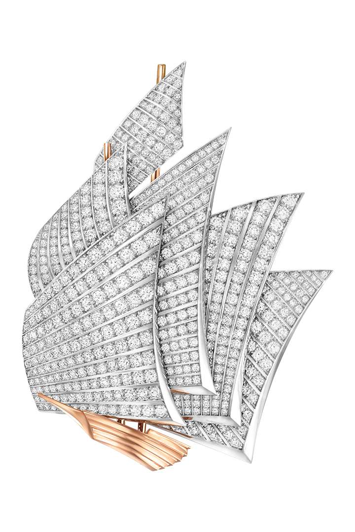Hispaniola Clip pays homage to the novel’s ship, set in 18k white-gold, rose-gold and diamonds.