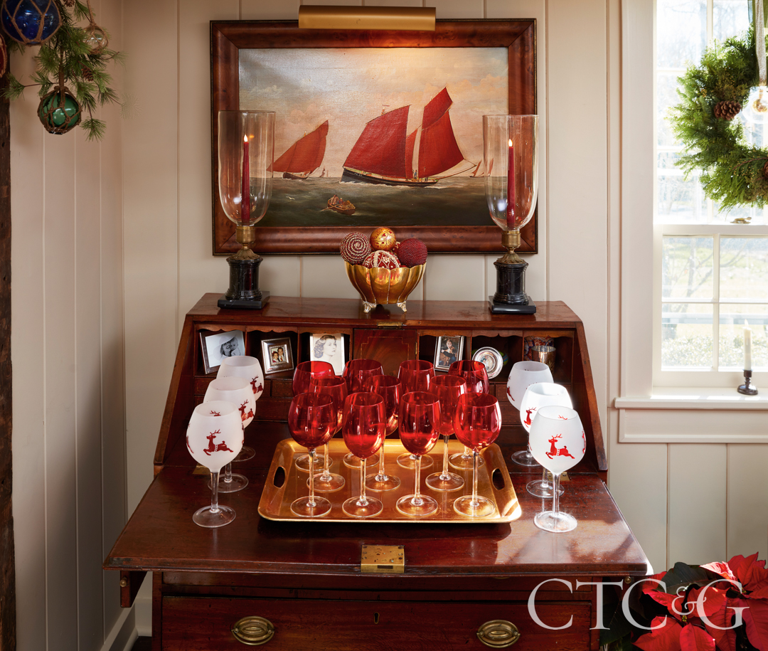 “Christmas is not just about green and red,” says designer Nikki Glazer, who incorporated earth tones and natural elements into this New Canaan home.