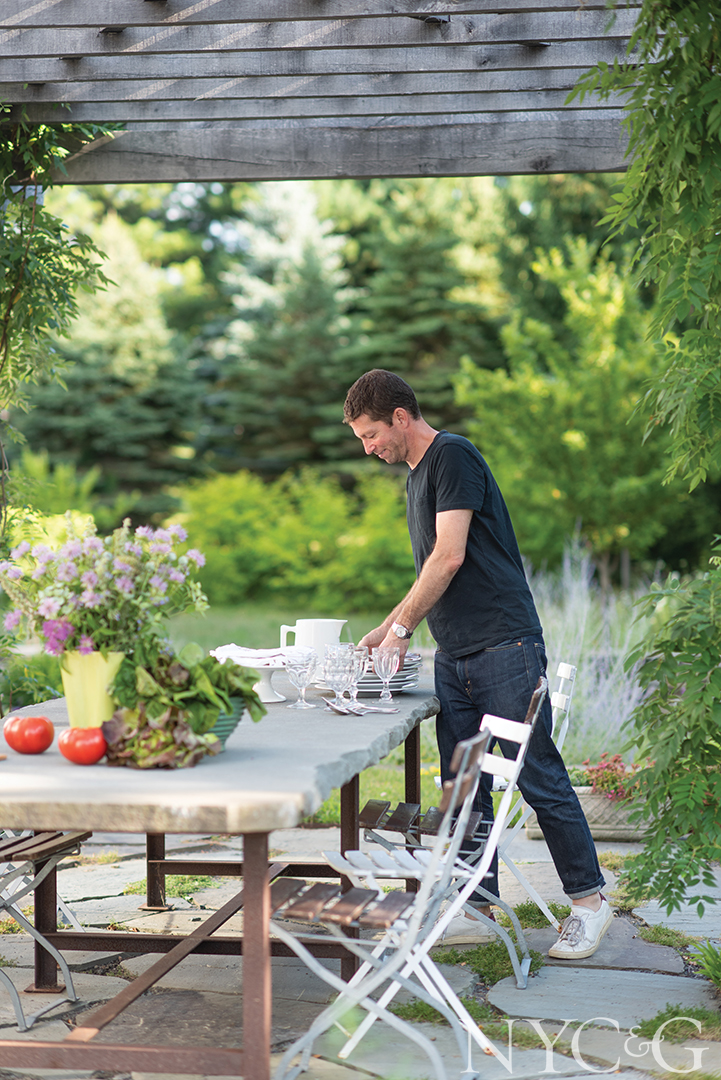 Walking paths, meadows, and destination points called for an open-ended design, and outdoor dining and lounging areas have been added, almost like external wings to the house. Now that Malin and Goetz are living on and interacting with the grounds, their want list has swollen to include a berry garden and an orchard. They have spent so much time communing with the land, in fact, that the scent of plant material is always on their fingertips. Which is why it’s no surprise that they launched a new fragrance called Stem this spring. Call it the essence of the country captured in a bottle. “All the work that goes into a garden ends up on your hands,” Malin says, “and we want to share that feeling.”