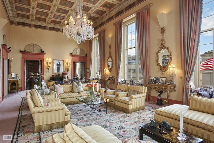After owning it for 25 years, Georgette Mosbacher has decided to list her opulent full-floor apartment at 1020 Fifth Avenue for $29.5M, reports Curbed. A fixture on the New York political scene and frequent donor to the GOP, her home has been the site of dinner parties with world elites ranging from King Juan Carlos I of Spain to Tom Hanks and nearly every Republican political player since the Nixon administration. In an interview with W Magazine, she casually revealed, “Cruz has been here, Kasich has been here, Donald has been here.” No doubt they all sat around the 18-seat dining table in her entertaining-ready dining room, which flows into a living room that boasts intricately detailed ceilings and a wood-burning fireplace. A cozy corner library off the living room lies adjacent to the columned gallery, accessible via a private elevator. There is also a gourmet kitchen with an attached butler’s pantry, two private bedroom suites, and a master suite that has two marble bathrooms, a study and a dressing room. John Burger of Brown Harris Stevens represents the listing.