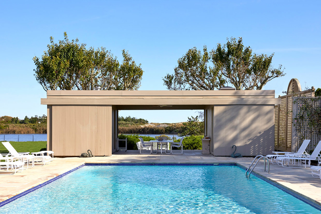 Typically, the bundling of two items together results in a price discount. For example, many have benefitted from buy one get one free deals in their lifetime. But two Southampton estates recently bundled together offer no such deal. Available for sale separately for $37.5 million and $35 million, and together for $72.5 million, the two properties span 12.2 acres, with one sitting on the waterfront of the charming Halsey Neck Pond.The pondside home, located at 359 Meadow Lane, encompasses 5.53 acres and is the more expensive real estate option. Along with those 700 feet of direct water frontage, a tennis court and pool offer plenty of opportunities for outdoor activity come summer. The main house, build in 1994, is 6,188 square feet in the contemporary style, with five bedrooms and six full bathrooms. According to the home’s listing, an adjacent lot to the west is protected and will never be built upon, ensuring unobstructed sunset views for all of eternity.Right next door is 660 Halsey Neck Lane, a larger estate with 6.725 acres and a 9,520-square-foot home known as “Four Fountains”. Originally constructed for use as an arts pavilion, the estate has a long artistic history; former CBS chief William S. Paley even used the property as a summer retreat and gallery space. The most recent owners transformed the ground into a series of parklike gardens, including a tree-lined drive that leads to a pair of bronze Art Deco falcons perched atop stone piers. Though this property is not waterfront, it is home to its own half-acre pond, as well as a reflecting pool surrounded by pear trees. Along with a six-bedroom main house, a separate two-story guest house is completely self-sufficient with four bedrooms and a kitchen of its own.Bespoke Real Estate represents the two stunning listings.