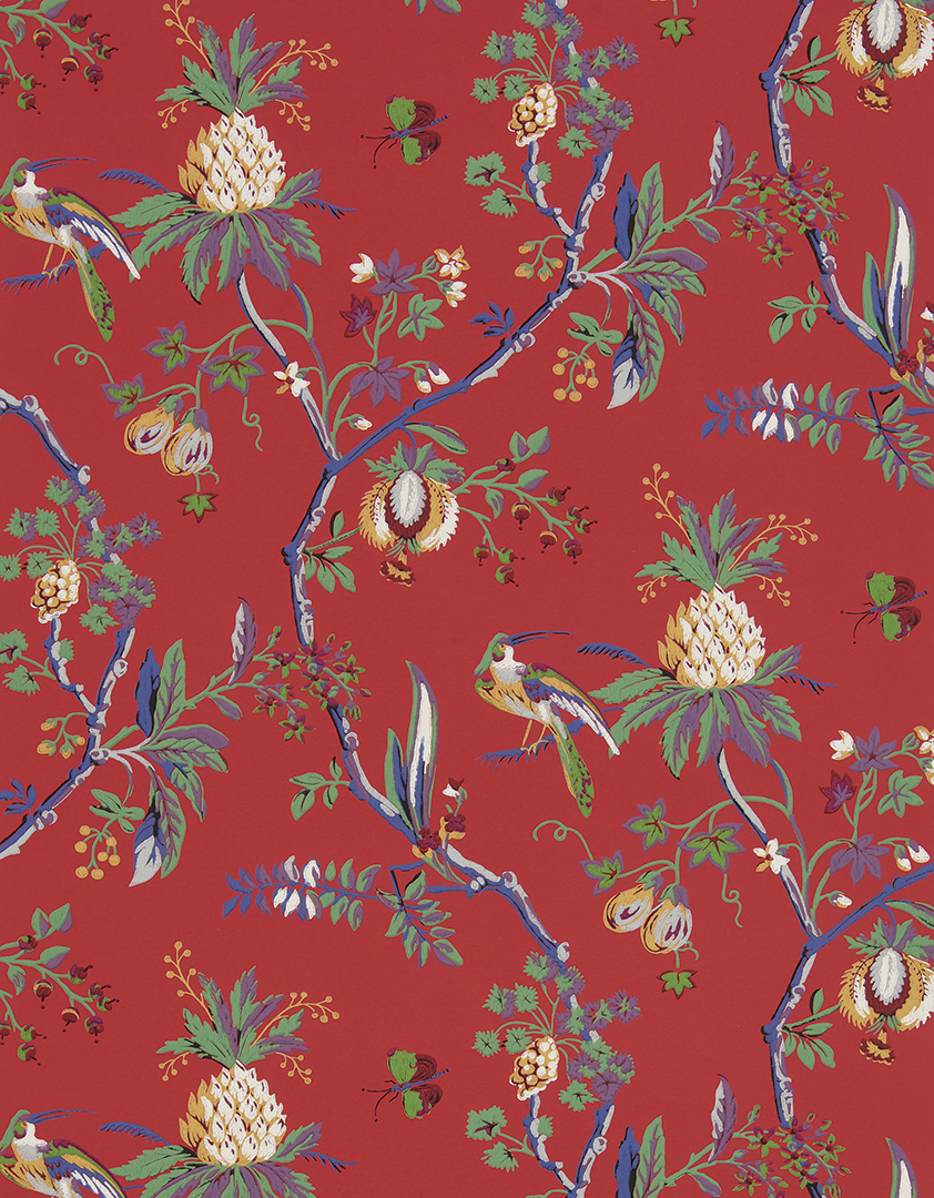Pierre Frey’s classic 18th-century wallpaper pattern La Comédie has been newly reintroduced in six colorways (shown: Rouge). Available to the trade, D&D, 979 Third Ave., Ste. 1611, NYC, 212-421-0534, pierrefrey.com.