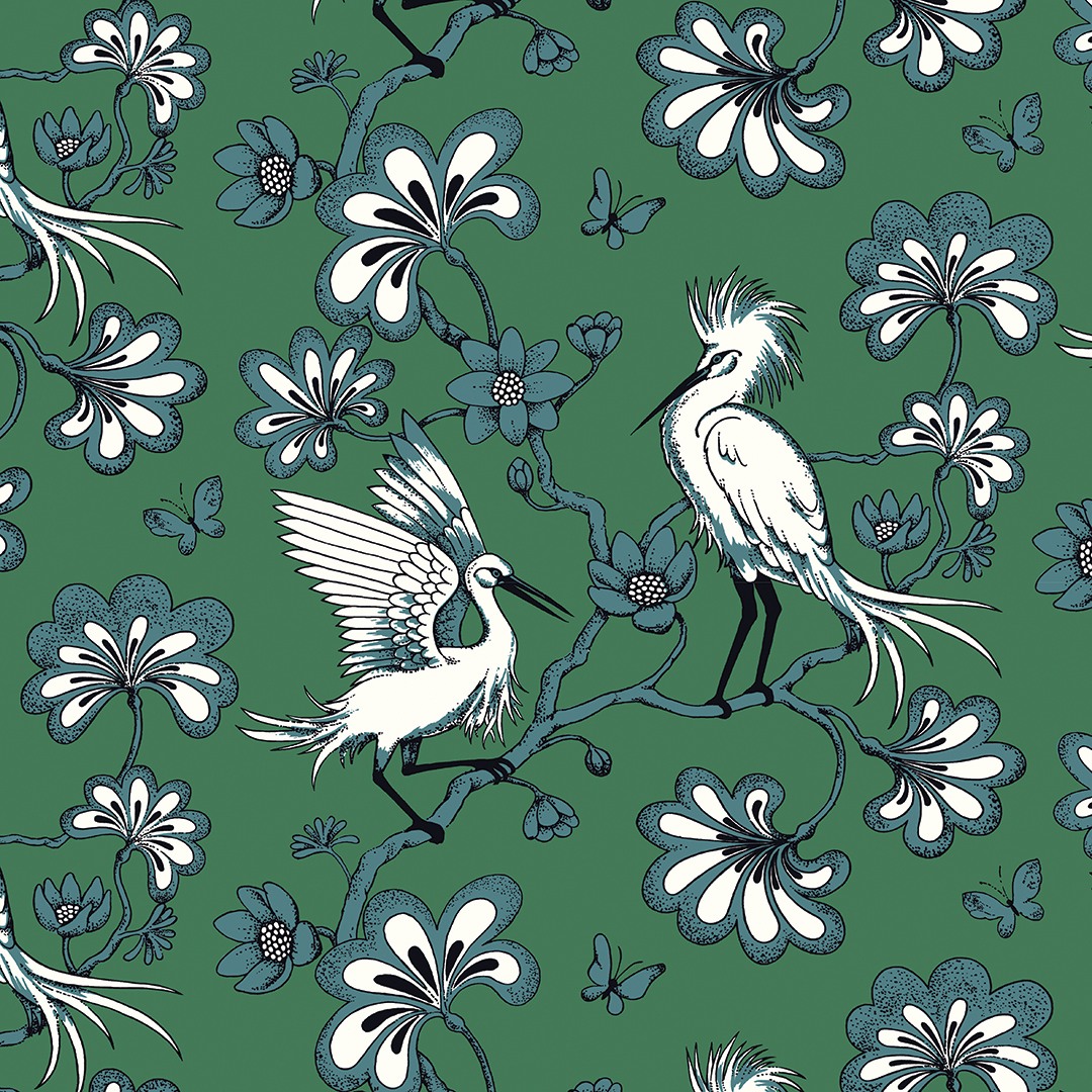 Produced by York Wallcoverings in six colorways (shown: FB1451), Egrets is a whimsical archival print by late Australian designer Florence Broadhurst. Available to the trade at Robert Allen, RADG, D&D, 979 Third Ave., Ste. 305, NYC, 212-421-1200, robertallendesign.com.