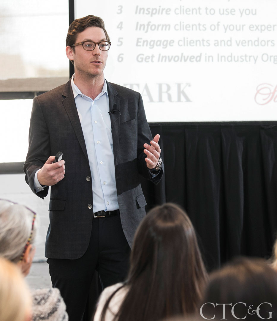 Guests listen as Chad Stark discusses “staying on the cutting edge in a rapidly changing design industry.”