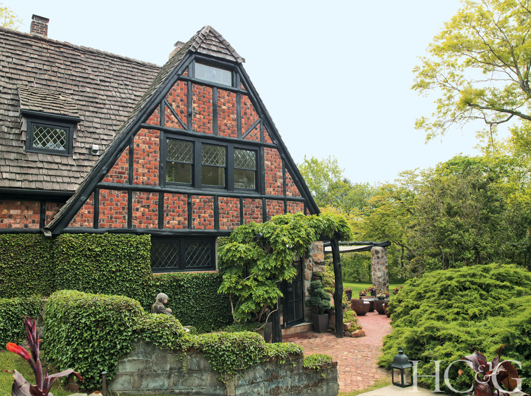 A brick-lined approach leads to both the former carriage house’s new front entry.
