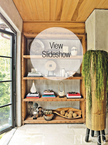 Heimowitz also focused on emphasizing the connection between inside and out, as the house’s several patios are used for frequent entertaining. She chose muted, organic colors that echo the landscape and materials like metal and wood for the furnishings, introducing such textures as the beige grass cloth on the master bedroom’s soaring ceiling. The neutral palette ensures that one room flows into the next. “I didn’t want color to dominate the house,” Heimowitz says.