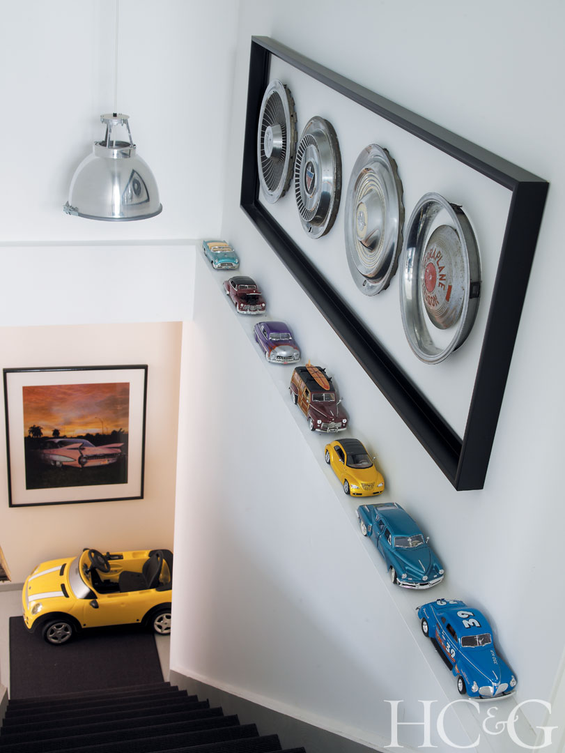 Boler also collects toy cars, many of which are displayed on a staircase.