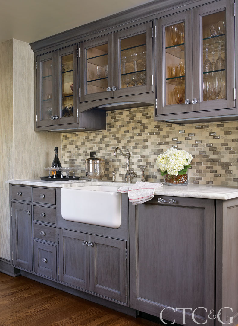 The butler’s pantry features custom cabinetry by Crane Woodworking.