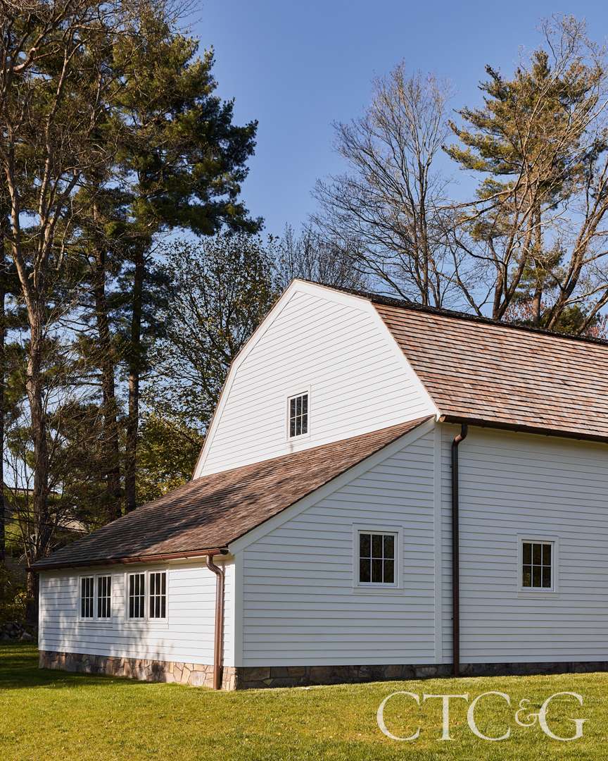 Originally part of a larger estate, the barn is estimated to date back to the late 18th century. “One wonderful quality of this historic property is that it includes a number of ancillary buildings original to the main house, including the barn,” says Major. “Due to town regulations, the client was challenged with maintaining the barn’s existing footprint and shell but needed to update it significantly. When we arrived, the interior had been stripped down to the studs and the floor was rubble. We wanted to build back a space that felt like it had been there for several hundred years.”